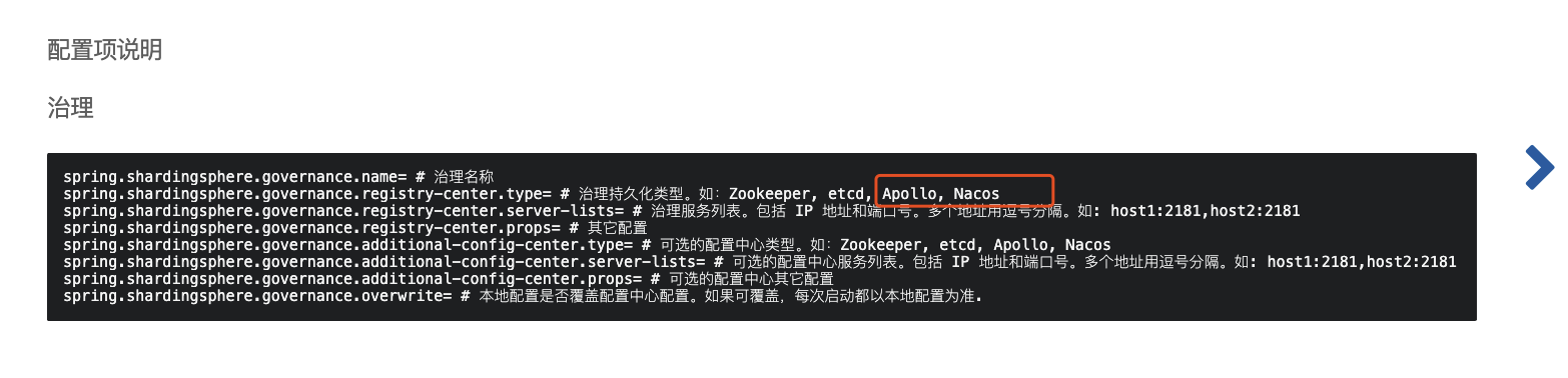 > @CrazyFz Thanks for your feedback, could you please submit a PR to fix it? I think [this page](https://shardingsphere.apache.org/document/current/cn/user-manual/shardingsphere-jdbc/configuration/spring-boot-starter/governance/) has a error too; there are just Zookeeper and Etcd implement RegistryRepository;Apollo and Nacos didn't implement RegistryRepository  ---------------------------------------------------------------- This is an automated message from the Apache Git Service. To respond to the message, please log on to GitHub and use the URL above to go to the specific comment. For queries about this service, please contact Infrastructure at: [email protected]