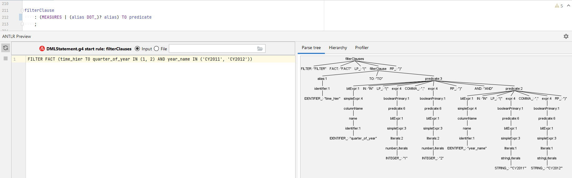 + : FILTER FACT LP_ filterClause (COMMA_ filterClause)* RP_
