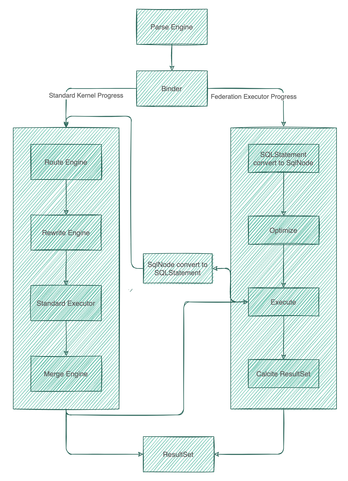## Background Hi community, Currently, `ShardingSphere` uses `Calcite` to implement cross database JOIN query, subquery and some complex aggregate query. But there are still some problems, such as: - `ShardingSphereOptimizer` module is not used - SQL parsing twice, including shardingsphere sql parsing and callite sql parsing - Two sets of metadata that make it difficult to maintain - Optimized logical SQL is difficult to route accurately Therefore, we need to refactor the process of the `FilterableExecutor` implementation to solve these problems. The overall process after optimization is as follows:  In order to accomplish this goal, we also need to complete the following tasks: - [ ] support sql node convert to ShardingSphere sql statement - [ ] move the logic of federation routing to the Binder module - [ ] refactor federation metadata and unified it into logical metadata - [ ] adjust the federation execution engine table scan implementation logic and integrate the standard kernel process - [ ] convert Calcite ResultSet to ShardingSphere ResultSet - [ ] add unit tests and integration test cases -- This is an automated message from the Apache Git Service. To respond to the message, please log on to GitHub and use the URL above to go to the specific comment. To unsubscribe, e-mail: [email protected] For queries about this service, please contact Infrastructure at: [email protected]