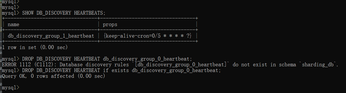 For #15662 , Add `IF EXISTS` keyword to `DROP DB_DISCOVERY HEARBEAT`.  -- This is an automated message from the Apache Git Service. To respond to the message, please log on to GitHub and use the URL above to go to the specific comment. To unsubscribe, e-mail: [email protected] For queries about this service, please contact Infrastructure at: [email protected]