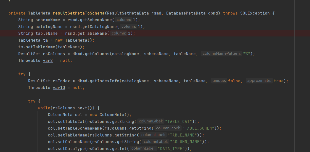io.seata.rm.datasource.sql.struct.cache.MysqlTableMetaCache#resultSetMetaToSchema