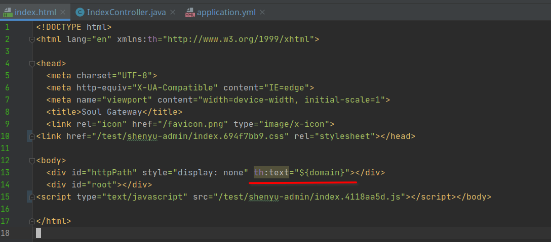 ### Is there an existing issue for this? - [X] I have searched the existing issues ### Current Behavior When i modify the context-path configuration of shenyu-admin, then visit website will get a null page ### Expected Behavior Modify context-path of shenyu-admin, website can visit successfully ### Steps To Reproduce 1. modify context-path in shenyu-admin  2. modify code in index.html  3. visit http://localhost:9095/test/shenyu-admin 4. get a null page  ### Environment ```markdown ShenYu version(s):2.3.0 ``` ### Debug logs _No response_ ### Anything else? I check the source code about shenyu-admin, find a ${domain} placehold in index.html  then i try to find a keyword "domain" in IndexController.java and change the code as below  visit http://localhost:9095/test/shenyu-admin/index, then it works  -- This is an automated message from the Apache Git Service. To respond to the message, please log on to GitHub and use the URL above to go to the specific comment. To unsubscribe, e-mail: [email protected] For queries about this service, please contact Infrastructure at: [email protected]