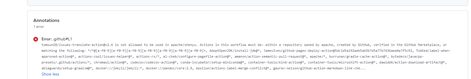 @damonxue Currently we are not allowed to use this action. https://github.com/apache/shenyu/actions/runs/2988413726  -- This is an automated message from the Apache Git Service. To respond to the message, please log on to GitHub and use the URL above to go to the specific comment. To unsubscribe, e-mail: [email protected] For queries about this service, please contact Infrastructure at: [email protected]