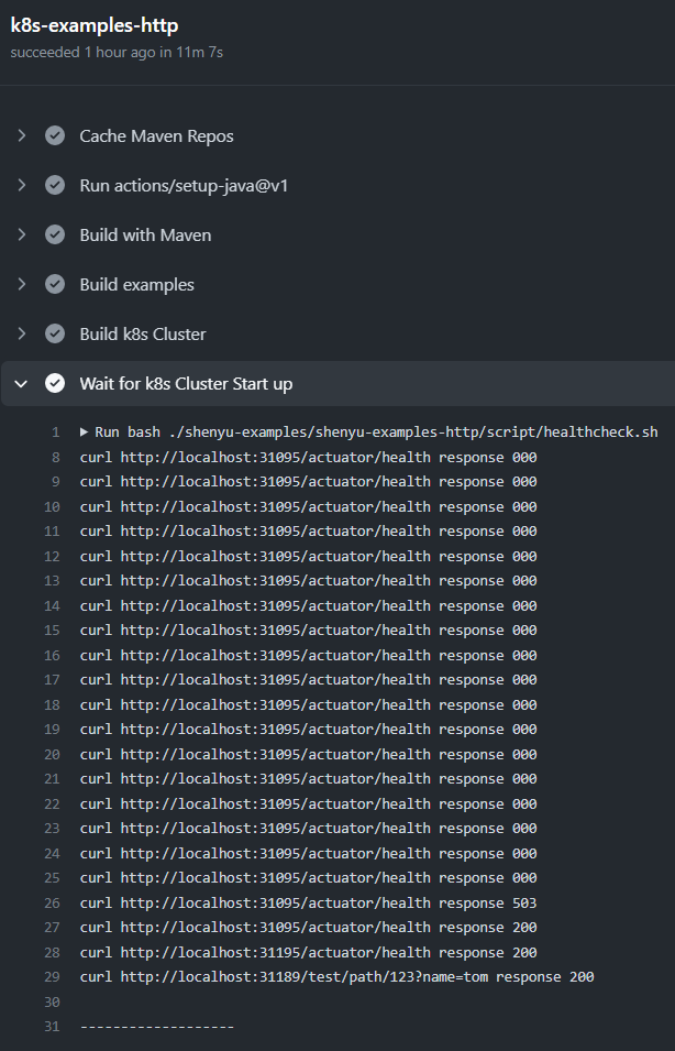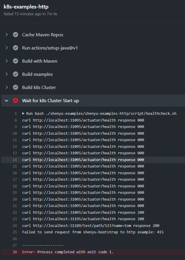 I commit failure checker in addition. When example-http fail to run, `curl http://localhost:31195/http/*` wouldn't return 200 as status code, then:  While step will pass due to healthy pod and good connection between bootstrap and example-http:  -- This is an automated message from the Apache Git Service. To respond to the message, please log on to GitHub and use the URL above to go to the specific comment. To unsubscribe, e-mail: [email protected] For queries about this service, please contact Infrastructure at: [email protected]