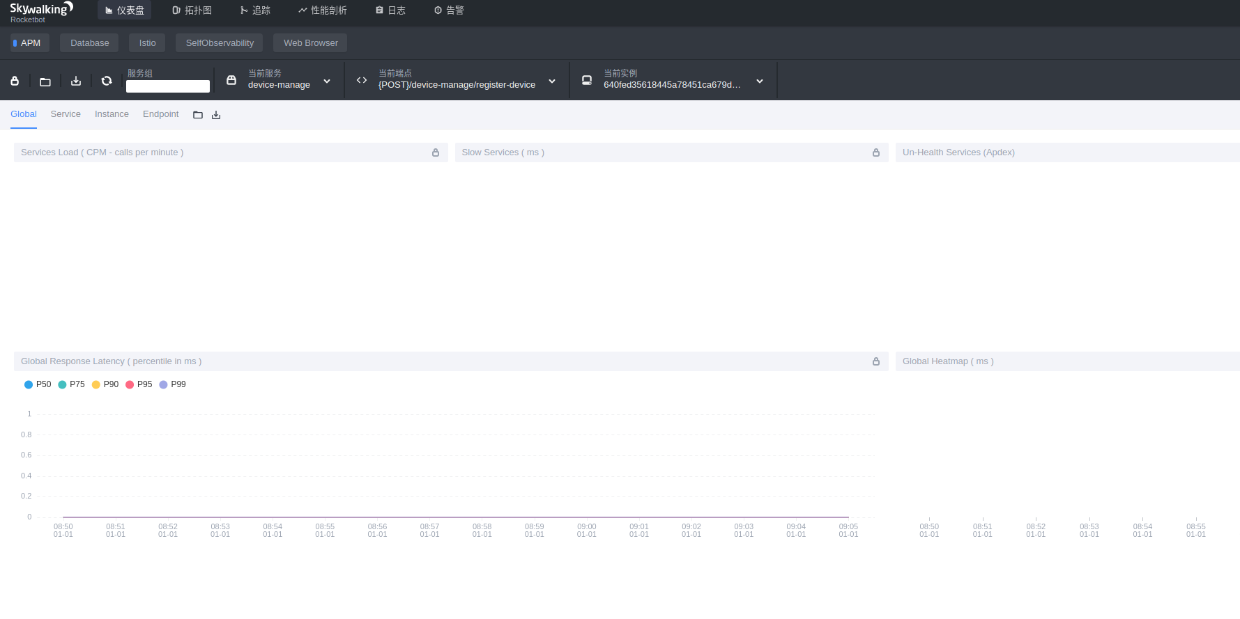 > In that PR, he said, the NPE only related the Oracle driver tracing. I am not sure whether you are in a similar case. I upgrade both agent and server side to master version. The agent looks work well. But I can not see any data in the web console.  I open the debug log for agent, it seems agent already send the data to server. ``` DEBUG 2021-01-02 09:07:47:816 DataCarrier.DEFAULT.Consumer.0.Thread TraceSegmentServiceClient : 1636 trace segments have been sent to collector. ``` Also tried modify cofig, not work ``` # The number of sampled traces per 3 seconds # Negative or zero means off, by default agent.sample_n_per_3_secs=1000 ``` ---------------------------------------------------------------- This is an automated message from the Apache Git Service. To respond to the message, please log on to GitHub and use the URL above to go to the specific comment. For queries about this service, please contact Infrastructure at: [email protected]