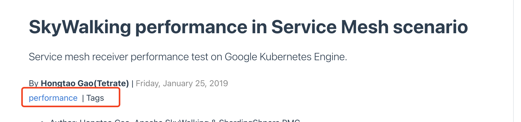 And the tags mixed with Chinese and English blogs, this should be fixed.  Another issue is, could you make this more like tags? Start the line with `Tags` and an icon? ---------------------------------------------------------------- This is an automated message from the Apache Git Service. To respond to the message, please log on to GitHub and use the URL above to go to the specific comment. For queries about this service, please contact Infrastructure at: [email protected]