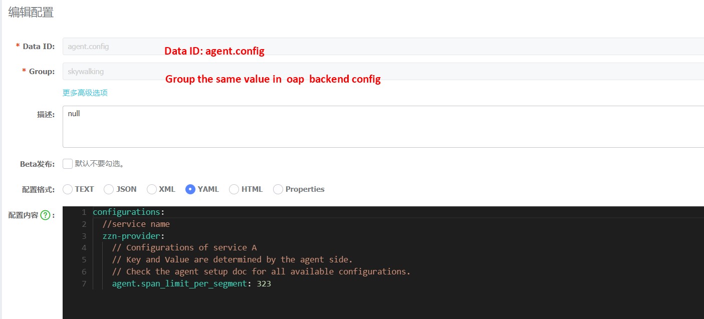 Please answer these questions before submitting your issue. - Why do you submit this issue? - [x] Question or discussion ___ ### Question - What do you want to know? how to config agent in nacos? I can't do either of the two methods shown below.   -- This is an automated message from the Apache Git Service. To respond to the message, please log on to GitHub and use the URL above to go to the specific comment. For queries about this service, please contact Infrastructure at: [email protected]