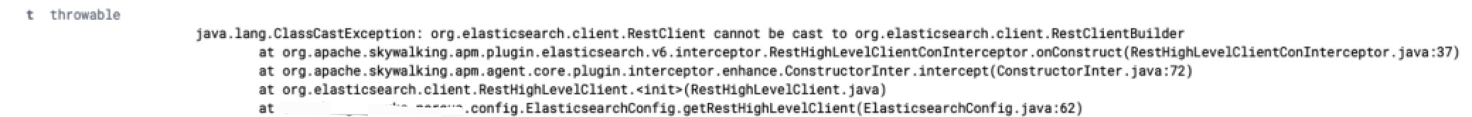 **Why NPE2 happens?**  First, we need to make it clear that skywalking sets dynamic fields when enhancing the constructors in `org.elasticsearch.client.RestHighLevelClient` class.  Secondly, we need to know that the exception occurred in the `org.apache.skywalking.apm.plugin.elasticsearch.v6.interceptor.RestHighLevelClientSearchMethodsInterceptor` class of enhanced the `org.elasticsearch.client.RestHighLevelClient.search` method. I checked the full agent log and found the following exception:  After asking related colleagues, I found that they used version 5.6.12 ES SDK. However, the argument types of constructors in version 5.x are different from those in version 6.x and 7.x. 5.x constructors:  6.x and 7.x constructors:  So we need to add witness class to the `org.apache.skywalking.apm.plugin.elasticsearch.v6.define.RestHighLevelClientInstrumentation` class of elasticsearch-6.x-plugin to avoid enhancing the incompatible version. And later, I will create a new PR to add `RestHighLevelClient` related enhancement for elaticsearch-5.x-plugin. -- This is an automated message from the Apache Git Service. To respond to the message, please log on to GitHub and use the URL above to go to the specific comment. For queries about this service, please contact Infrastructure at: [email protected]