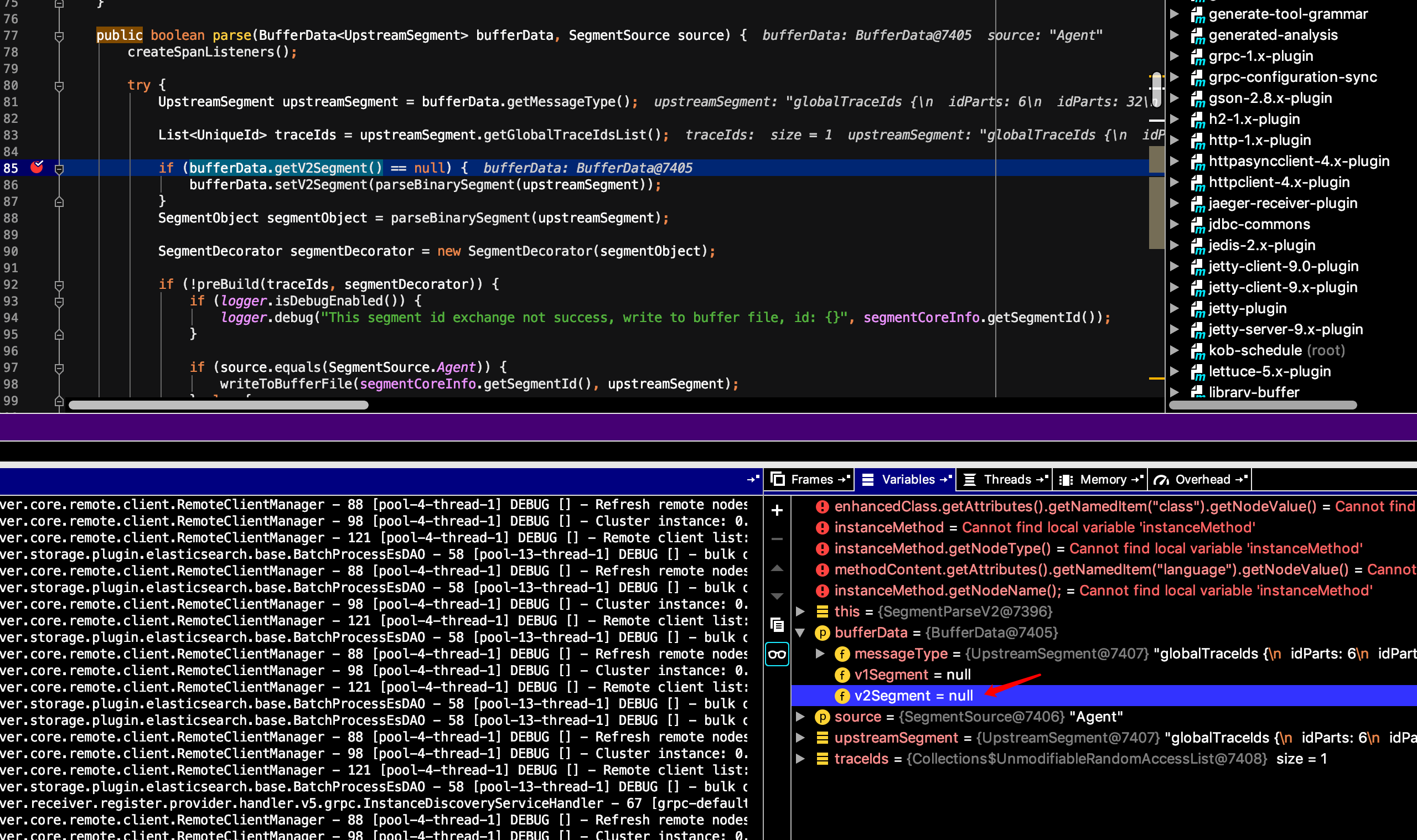 zhaoyuguang edited a comment on issue #2828: Optimize SegmentParseV2::parse code logic URL: https://github.com/apache/skywalking/pull/2828#issuecomment-499026577 With debug, `bufferData.getV2Segment() == null` is true so parse method called multiple time.