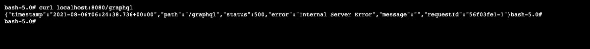 i have a try. ``` curl localhost:8080/graphql ``` it looks same error  error log is same. i dont think this is network program -- This is an automated message from the Apache Git Service. To respond to the message, please log on to GitHub and use the URL above to go to the specific comment. To unsubscribe, e-mail: [email protected] For queries about this service, please contact Infrastructure at: [email protected]