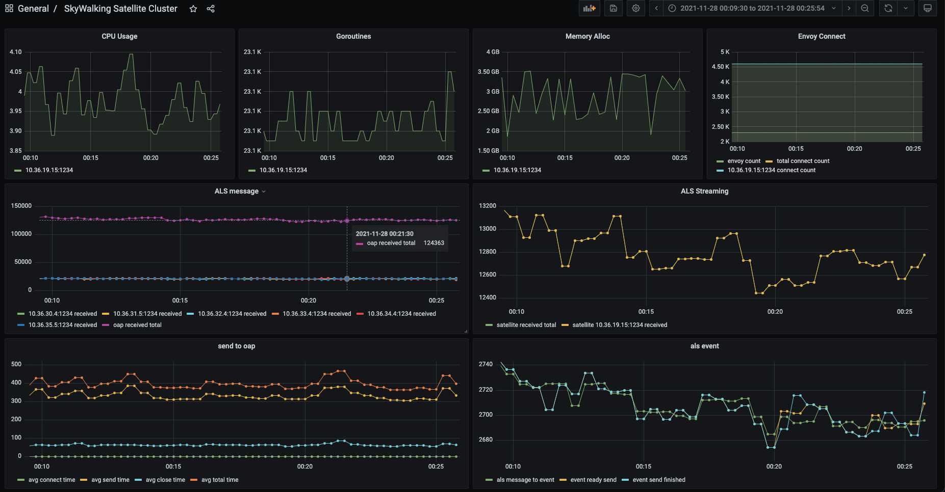 I am working on improving the performance of transparent message transmission for the [skywalking-satellite](https://github.com/apache/skywalking-satellite) project. Then I realize the ALS protocol needed to operate the stream on each identity stream message. The satellite needs more resources and time. This is especially true when envoys are high in number. I have tried to cache the stream on the satellite side, but more resources are wasted due to resource preemption. So I think we could dependency on the gRPC streaming messages are order feature, using the same stream to send cross identity messages. After that, I did a test in this way, and the efficiency of sending ALS messages to OAP was improved, and the memory queue of the satellite was more stable. This new protocol is copied from ALS and will only be called by the satellite. Here have some screenshots to see the effect after optimization. Here, `2300` envoy instances are used to transparently transmit ALS messages to OAP through satellite, at a rate of `120K+` QPS. The ALS message tab is read from the `oap`, `envoy_als_in_count` metric.   - [x] Update the [`CHANGES` log](https://github.com/apache/skywalking/blob/master/CHANGES.md). -- This is an automated message from the Apache Git Service. To respond to the message, please log on to GitHub and use the URL above to go to the specific comment. To unsubscribe, e-mail: [email protected] For queries about this service, please contact Infrastructure at: [email protected]