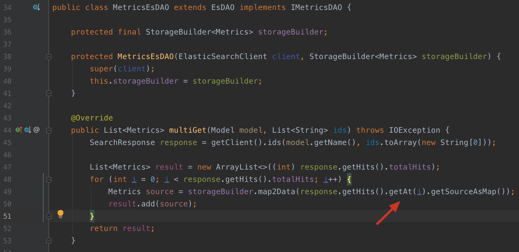 There will throw an exception,many features will not be available.   Change line 48 can make the code robust ``` for (int i = 0; i < response.getHits().getHits().length; i++) {} ``` ---------------------------------------------------------------- This is an automated message from the Apache Git Service. To respond to the message, please log on to GitHub and use the URL above to go to the specific comment. For queries about this service, please contact Infrastructure at: [email protected]