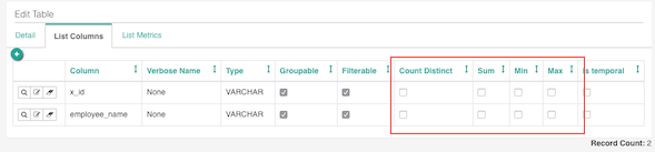 code226 commented on issue #5639: Not showing count distinct, sum, min, max checkboxes in List Column URL: https://github.com/apache/incubator-superset/issues/5639#issuecomment-413661130 I'm expecting this, (which i saw in "version": "0.25.5")  but am getting this instead  i've boxed up the checkboxes that i'm missing