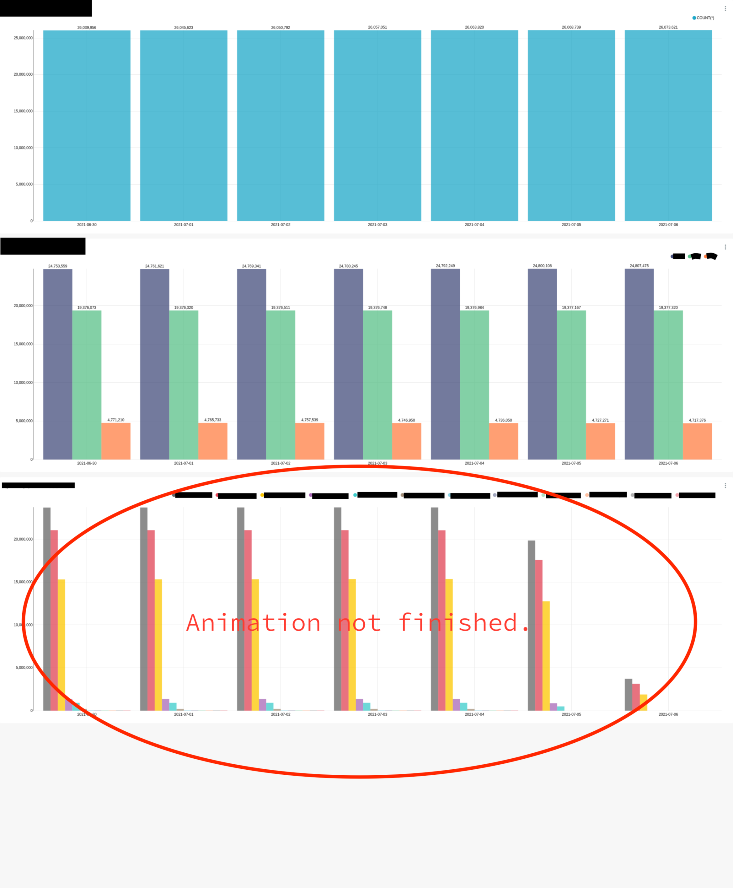 The chart in the report screenshot is sent before the animation is finished. ### Expected results Take a screenshot of the chart with the chart animation finished and send the report. ### Actual results Before the chart animation is finished, a screenshot is taken and a report is sent. #### Screenshots Image sent as a report  #### How to reproduce the bug ### Environment - superset version: Superset 1.2.0 - python version: Python 3.7.9 - node.js version: ### Checklist - [x] I have checked the superset logs for python stacktraces and included it here as text if there are any. - There was no stack trace. - [x] I have reproduced the issue with at least the latest released version of superset. - [x] I have checked the issue tracker for the same issue and I haven't found one similar. ### Additional context Pull request submitted. https://github.com/apache/superset/pull/15610 -- This is an automated message from the Apache Git Service. To respond to the message, please log on to GitHub and use the URL above to go to the specific comment. To unsubscribe, e-mail: [email protected] For queries about this service, please contact Infrastructure at: [email protected] --------------------------------------------------------------------- To unsubscribe, e-mail: [email protected] For additional commands, e-mail: [email protected]
