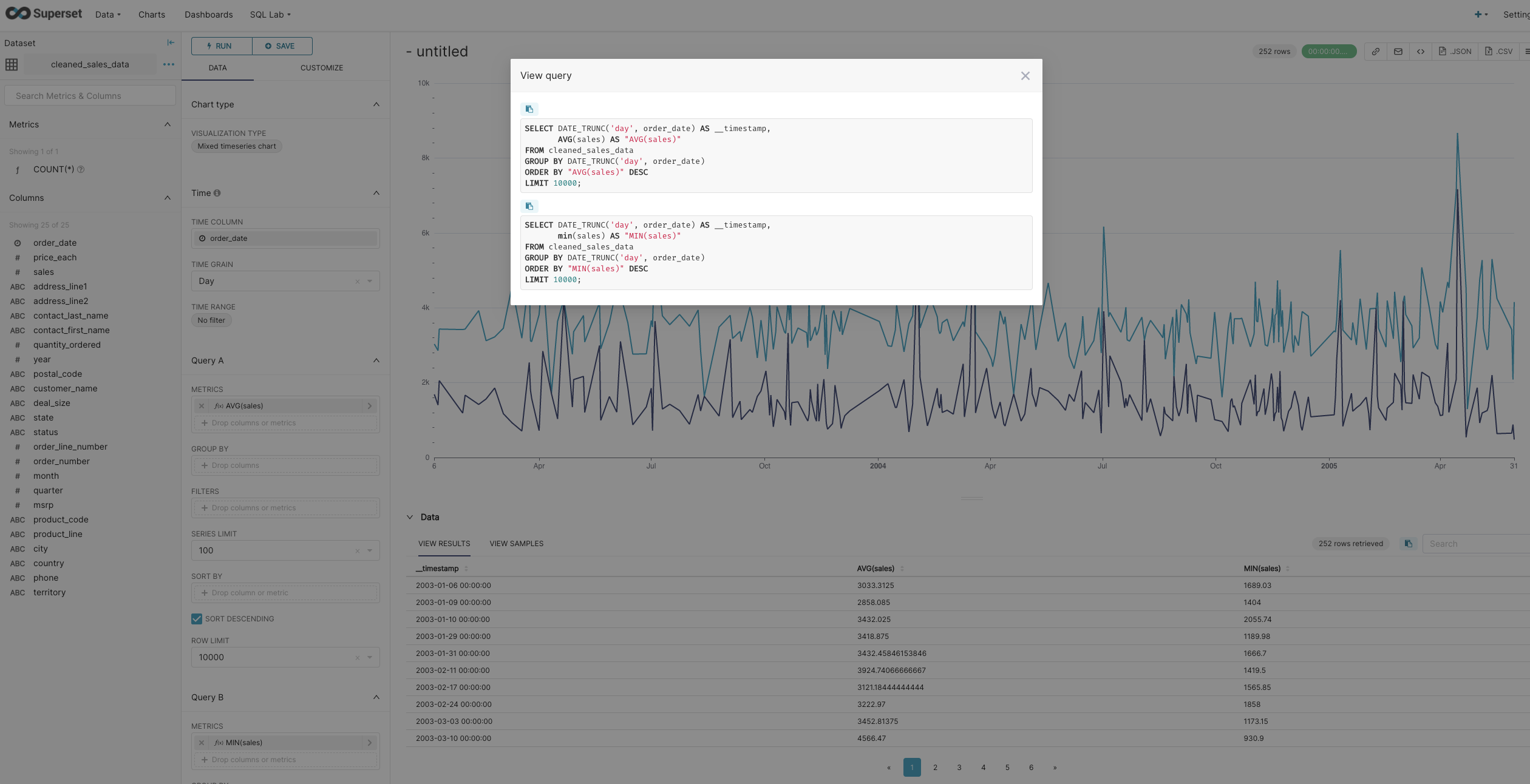 ### SUMMARY Before, when user used a chart that sends multiple queries (such as Mixed Time Series chart), View query modal and data pane were showing results of only the first query. This PR fixes that behaviour. ### BEFORE/AFTER SCREENSHOTS OR ANIMATED GIF Before: see https://github.com/apache/superset/issues/15344 After:  ### TESTING INSTRUCTIONS 1. Open Mixed Time Series chart and run queries 2. Verify that data pane shows results of metrics from both queries 3. Verify that View query modal shows both queries 4. Switch to a chart that sends only 1 query (e.g. Line chart) 5. Verify that everything works as before ### ADDITIONAL INFORMATION <!--- Check any relevant boxes with "x" --> <!--- HINT: Include "Fixes #nnn" if you are fixing an existing issue --> - [x] Has associated issue: fixes #15344 - [ ] Changes UI - [ ] Includes DB Migration (follow approval process in [SIP-59](https://github.com/apache/superset/issues/13351)) - [ ] Migration is atomic, supports rollback & is backwards-compatible - [ ] Confirm DB migration upgrade and downgrade tested - [ ] Runtime estimates and downtime expectations provided - [ ] Introduces new feature or API - [ ] Removes existing feature or API CC @junlincc @jinghua-qa -- This is an automated message from the Apache Git Service. To respond to the message, please log on to GitHub and use the URL above to go to the specific comment. To unsubscribe, e-mail: [email protected] For queries about this service, please contact Infrastructure at: [email protected] --------------------------------------------------------------------- To unsubscribe, e-mail: [email protected] For additional commands, e-mail: [email protected]