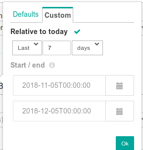 paudelsagar commented on issue #6263: Chart with params since: '7 days' and 'until': now errors "From date cannot be larger than to date" URL: https://github.com/apache/incubator-superset/issues/6263#issuecomment-444354893  @michellethomas Relative to today is not convenient for some reason. If I wanted to see the last month results then It will filter relative to today rather it should be relative to this month and also it doesn't allow to see results of 2 months ago.