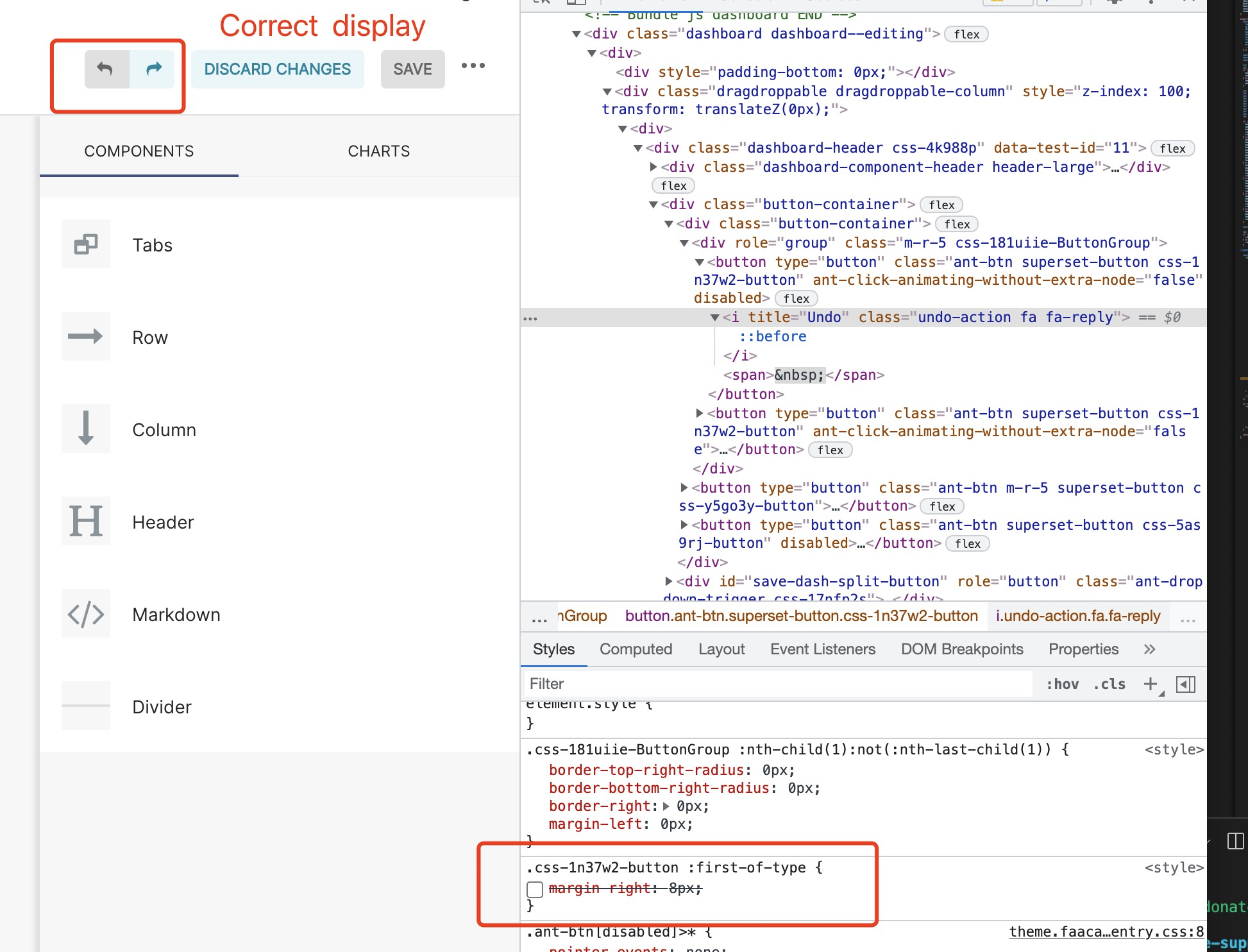 I found without the :first-of-type css, then it turns out correct, I may still need to check where this css being used, and try to decoupled them. -- This is an automated message from the Apache Git Service. To respond to the message, please log on to GitHub and use the URL above to go to the specific comment. To unsubscribe, e-mail: [email protected] For queries about this service, please contact Infrastructure at: [email protected] --------------------------------------------------------------------- To unsubscribe, e-mail: [email protected] For additional commands, e-mail: [email protected]