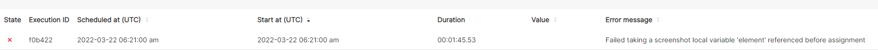 Report state: Failed taking a screenshot local variable 'element' referenced