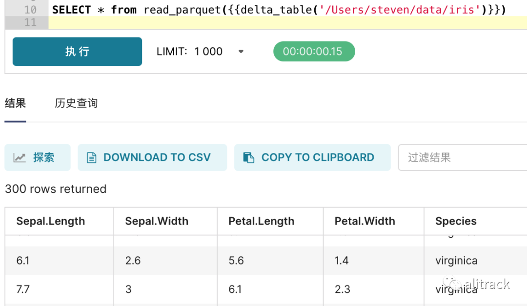 SELECT * from read_parquet({{delta_table('/Users/steven/data/iris')}})