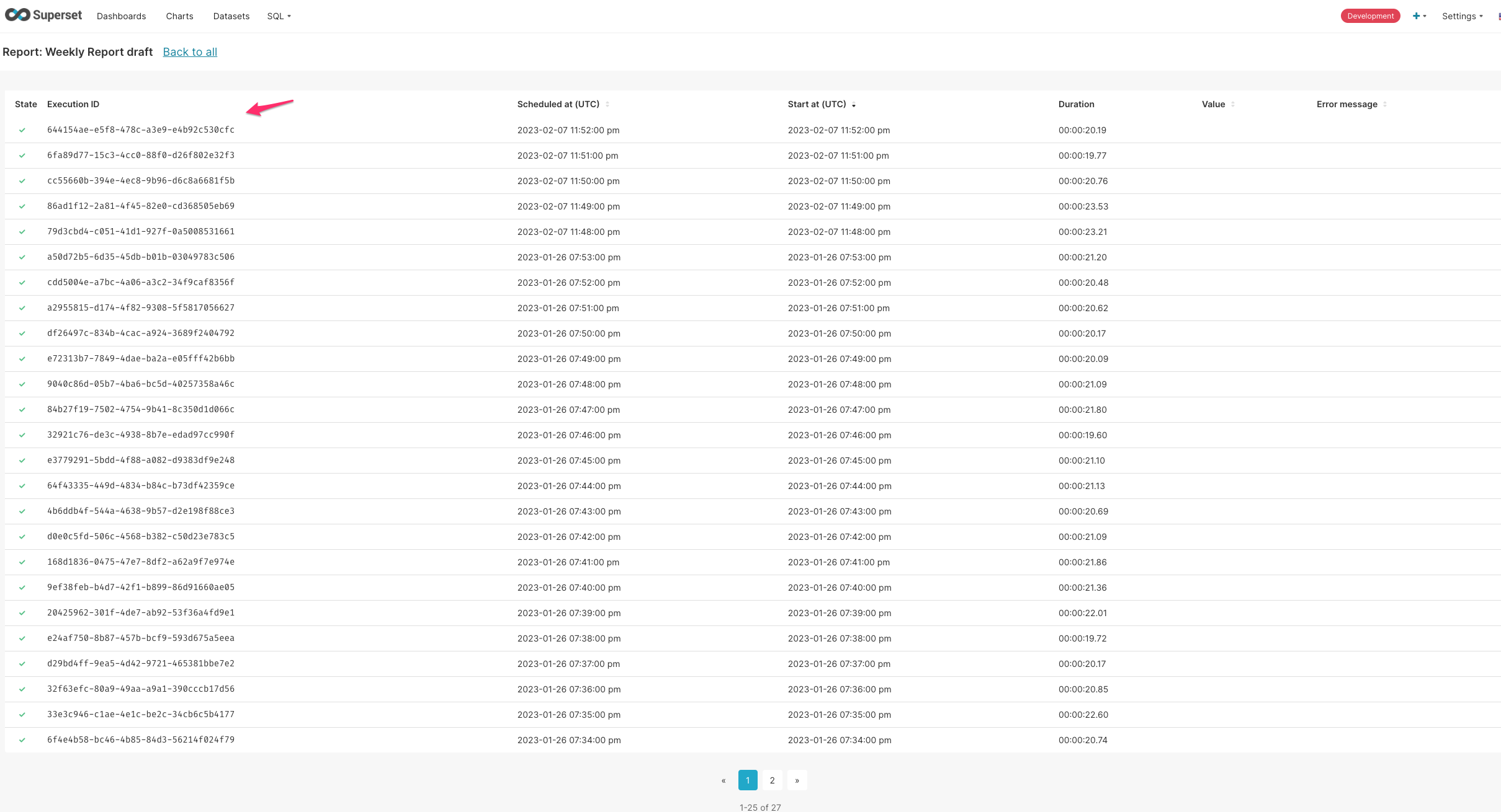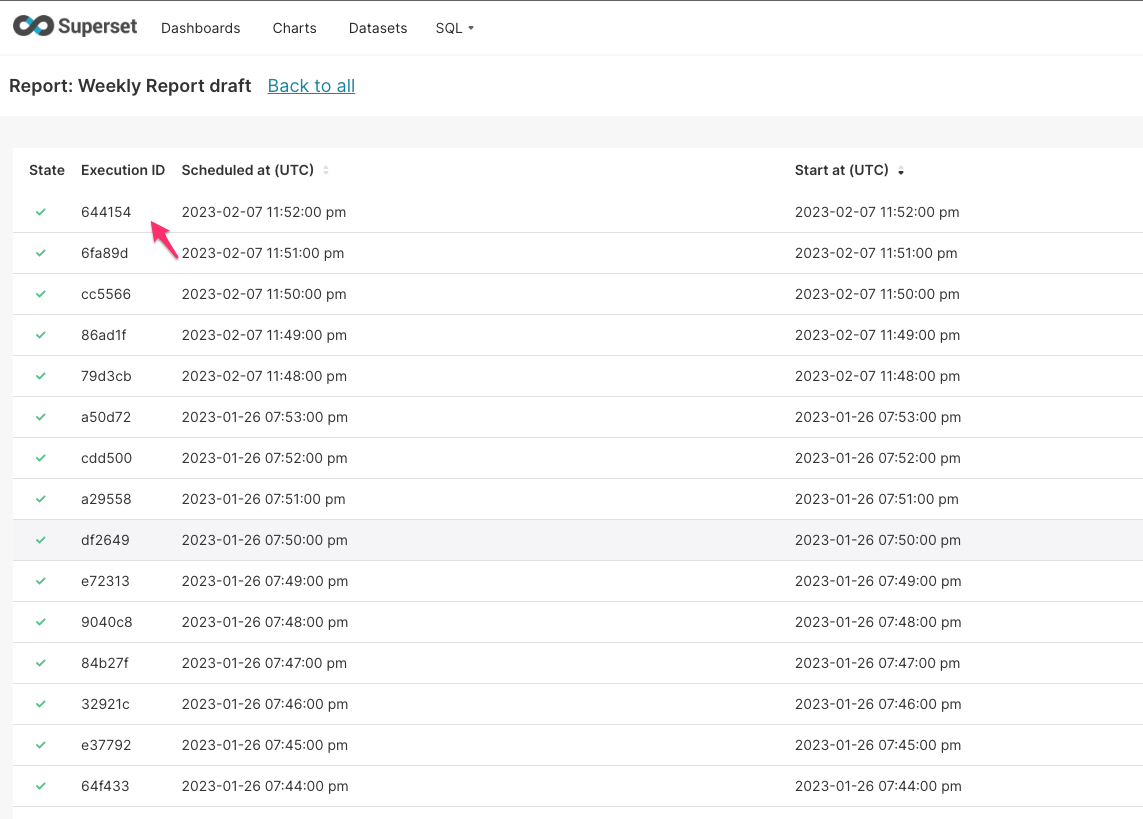 <!--- Please write the PR title following the conventions at https://www.conventionalcommits.org/en/v1.0.0/ Example: fix(dashboard): load charts correctly --> ### SUMMARY Small change to print the entire uuid on the alert/report execution logs when using the id to cross-check in system logs ### BEFORE  ### AFTER  ### TESTING INSTRUCTIONS View execution logs for alerts or reports ### ADDITIONAL INFORMATION <!--- Check any relevant boxes with "x" --> <!--- HINT: Include "Fixes #nnn" if you are fixing an existing issue --> - [ ] Has associated issue: - [ ] Required feature flags: - [ ] Changes UI - [ ] Includes DB Migration (follow approval process in [SIP-59](https://github.com/apache/superset/issues/13351)) - [ ] Migration is atomic, supports rollback & is backwards-compatible - [ ] Confirm DB migration upgrade and downgrade tested - [ ] Runtime estimates and downtime expectations provided - [ ] Introduces new feature or API - [ ] Removes existing feature or API -- This is an automated message from the Apache Git Service. To respond to the message, please log on to GitHub and use the URL above to go to the specific comment. To unsubscribe, e-mail: [email protected] For queries about this service, please contact Infrastructure at: [email protected] --------------------------------------------------------------------- To unsubscribe, e-mail: [email protected] For additional commands, e-mail: [email protected]