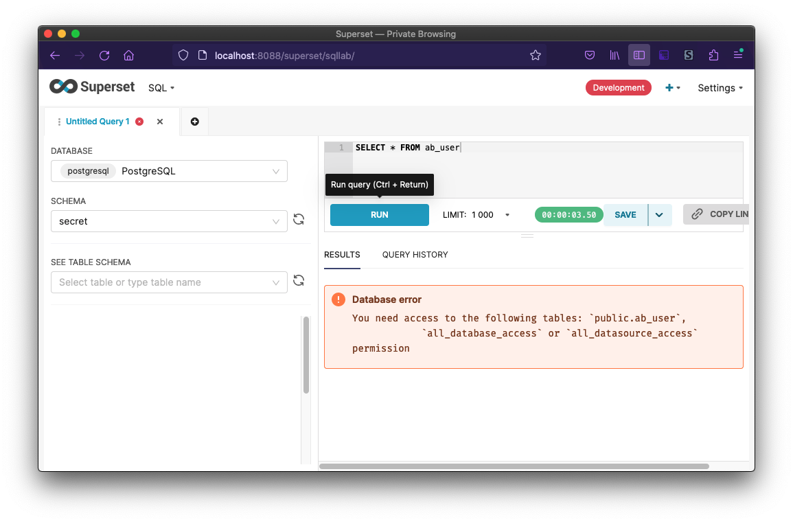 <!--- Please write the PR title following the conventions at https://www.conventionalcommits.org/en/v1.0.0/ Example: fix(dashboard): load charts correctly --> ### SUMMARY <!--- Describe the change below, including rationale and design decisions --> When a user runs a query in SQL Lab referencing a table without an explicit schema, we check permissions using the **query schema** instead of the **default database schema**. This allows users to query schemas that they shouldn't have access to. In this example, a user has access to only the `secret` schema. They select the `secret` schema in SQL Lab and run the following query: ```sql SELECT * FROM ab_user ``` The database (Postgres in this case, but this applies to most if not all databases) will run the query against the default schema, `public`, returning data. Superset will check if the user has access to the `secret` schema instead, allowing the query to run and return results to the user:  With this fix the user is restricted:  ### TESTING INSTRUCTIONS <!--- Required! What steps can be taken to manually verify the changes? --> 1. Add a schema called `secret` to a database. 1. Create a role called `secret` that has the permission `[schema access on [PostgreSQL].[secret]]`. 1. Add a test user with roles `sql_lab` and `secret`. 1. As the test user, select the `secret` schema in SQL Lab and run `SELECT * FROM ab_user`. ### ADDITIONAL INFORMATION <!--- Check any relevant boxes with "x" --> <!--- HINT: Include "Fixes #nnn" if you are fixing an existing issue --> - [ ] Has associated issue: - [ ] Required feature flags: - [ ] Changes UI - [ ] Includes DB Migration (follow approval process in [SIP-59](https://github.com/apache/superset/issues/13351)) - [ ] Migration is atomic, supports rollback & is backwards-compatible - [ ] Confirm DB migration upgrade and downgrade tested - [ ] Runtime estimates and downtime expectations provided - [ ] Introduces new feature or API - [ ] Removes existing feature or API ### DISCUSSION This problem happens because the query schema is not passed to the connection as the "default schema". SQLAlchemy only supports passing the schema to reflection calls, but not to query execution. In the future, we should add DB-engine-specific methods that allow passing a default schema and catalog, to mutate the SQLAlchemy URI to use the catalog and schemas as the default ones. This would improve the experience in SQL Lab (where the schema dropdown selector does not affect the query, and is used only for the table autocompletion), and would also allow us to support catalogs. -- This is an automated message from the Apache Git Service. To respond to the message, please log on to GitHub and use the URL above to go to the specific comment. To unsubscribe, e-mail: [email protected] For queries about this service, please contact Infrastructure at: [email protected] --------------------------------------------------------------------- To unsubscribe, e-mail: [email protected] For additional commands, e-mail: [email protected]
