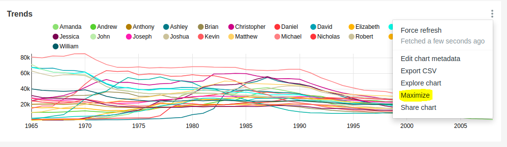 oashton opened a new issue #9209: Maximixe/minimize chart URL: https://github.com/apache/incubator-superset/issues/9209 **Is your feature request related to a problem? Please describe.** Be able to maximize/minimize a chart **Describe the solution you'd like** Enable a new option in the chart contextual menĂº that let maximize/minimize the chart **Additional context**