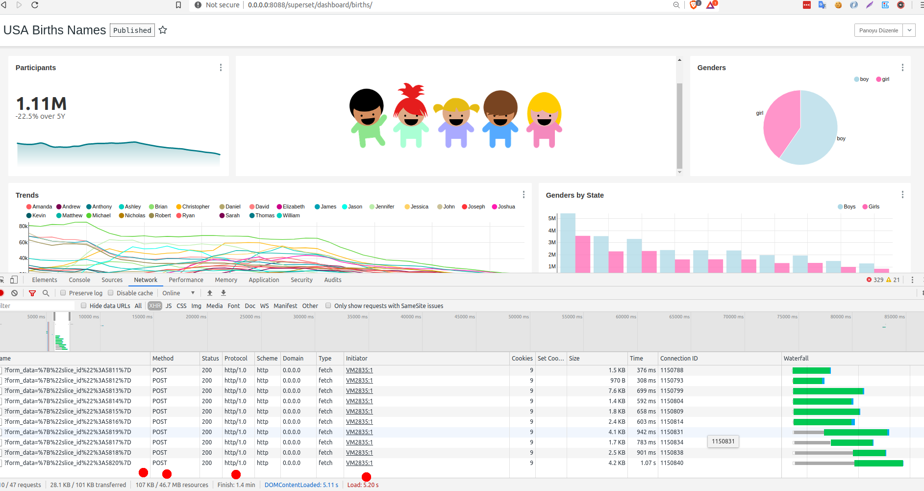 dpugulo commented on issue #5039: [Ready]Allow domain-sharding option for dashboard URL: https://github.com/apache/incubator-superset/pull/5039#issuecomment-597624989 hi, i setted SUPERSET_WEBSERVER_DOMAINS in custom config file but no change...  my config file completely---------- import logging import os #orjinal #from werkzeug.contrib.cache import FileSystemCache logger = logging.getLogger() def get_env_variable(var_name, default=None): """Get the environment variable or raise exception.""" try: return os.environ[var_name] except KeyError: if default is not None: return default else: error_msg = "The environment variable {} was missing, abort...".format( var_name ) raise EnvironmentError(error_msg) DATABASE_DIALECT = get_env_variable("DATABASE_DIALECT") DATABASE_USER = get_env_variable("DATABASE_USER") DATABASE_PASSWORD = get_env_variable("DATABASE_PASSWORD") DATABASE_HOST = get_env_variable("DATABASE_HOST") DATABASE_PORT = get_env_variable("DATABASE_PORT") DATABASE_DB = get_env_variable("DATABASE_DB") # The SQLAlchemy connection string. SQLALCHEMY_DATABASE_URI = "%s://%s:%s@%s:%s/%s" % ( DATABASE_DIALECT, DATABASE_USER, DATABASE_PASSWORD, DATABASE_HOST, DATABASE_PORT, DATABASE_DB, ) #SQLALCHEMY_DATABASE_URI = SUPERSET_SQLALCHEMY_DATABASE_URI SQLALCHEMY_TRACK_MODIFICATIONS = True #SECRET_KEY = 'thisISaSECRET_1234' REDIS_HOST = get_env_variable("REDIS_HOST") REDIS_PORT = get_env_variable("REDIS_PORT") #orjinal #RESULTS_BACKEND = FileSystemCache('/app/superset_home/sqllab') # On Redis from werkzeug.contrib.cache import RedisCache RESULTS_BACKEND = RedisCache( host=REDIS_HOST, port=REDIS_PORT, key_prefix='superset_results') CACHE_CONFIG = { 'CACHE_TYPE': 'redis', 'CACHE_DEFAULT_TIMEOUT': 60*60*24*365, 'CACHE_KEY_PREFIX': 'superset_', 'CACHE_REDIS_HOST': REDIS_HOST, 'CACHE_REDIS_PORT': REDIS_PORT, 'CACHE_REDIS_DB': 1, 'CACHE_REDIS_URL': 'redis://redis:6379/1' } class CeleryConfig(object): BROKER_URL = "redis://%s:%s/0" % (REDIS_HOST, REDIS_PORT) CELERY_IMPORTS = ("superset.sql_lab",) CELERY_RESULT_BACKEND = "redis://%s:%s/1" % (REDIS_HOST, REDIS_PORT) CELERY_ANNOTATIONS = {"tasks.add": {"rate_limit": "100/s"}} CELERY_TASK_PROTOCOL = 1 CELERY_CONFIG = CeleryConfig # Flask-WTF flag for CSRF WTF_CSRF_ENABLED = True # Add endpoints that need to be exempt from CSRF protection WTF_CSRF_EXEMPT_LIST = [] # A CSRF token that expires in 1 yea WTF_CSRF_TIME_LIMIT = 60 * 60 * 24 * 365 #Flask-WTF flag for CSRF CSRF_ENABLED = True #superset client bağlantıı içibn ENABLE_CORS = True CORS_OPTIONS = { 'supports_credentials': True, 'allow_headers': [ 'X-CSRFToken', 'Content-Type', 'Origin', 'X-Requested-With', 'Accept', ], 'resources': [ '/superset/csrf_token/' , '/api/v1/formData/', '/superset/explore_json/*', '/api/v1/query/', '/superset/fetch_datasource_metadata/' '/superset/explore_json/', '/superset/log/*' ], 'origins': [ ,'rapor.test' ,'172.17.0.1:8088' ,'0.0.0.0:8088' ,'*' ], } HTTP_HEADERS = {'X-Frame-Options': 'ALLOWALL'} #SESSION_COOKIE_HTTPONLY = False SESSION_COOKIE_SECURE = False SESSION_COOKIE_SAMESITE = None PUBLIC_ROLE_LIKE_GAMMA = True AUTH_ROLE_PUBLIC = 'Public' AUTH_USER_REGISTRATION_ROLE = "Public" FAB_UPDATE_PERMS = False APP_NAME = "Rapor" APP_ICON = "/static/assets/images/gdu-logo2.png" APP_ICON_WIDTH = 100 SQLALCHEMY_POOL_SIZE=40 SQLALCHEMY_POOL_TIMEOUT=600 SQLLAB_ASYNC_TIME_LIMIT_SEC = 60 * 60 * 6 SUPERSET_WEBSERVER_TIMEOUT = 6000 SUPERSET_WEBSERVER_DOMAINS = ['0.0.0.0'] # try: from superset_config_docker import * # noqa import superset_config_docker logger.info( f"Loaded your Docker configuration at " f"[{superset_config_docker.__file__}]" ) except ImportError: logger.info("Using default Docker config...")