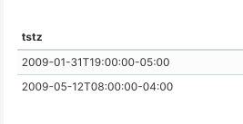 eugeniamz commented on issue #9449: Timestamps are only displayed in UTC and not in local timezone URL: https://github.com/apache/incubator-superset/issues/9449#issuecomment-611232567 I can't reproduce it. I did this simple test. My Database is in UTC :  But when query in Superset, I am in EST,  Seems that it shows accordingly. Can you please show an example to reproduce?