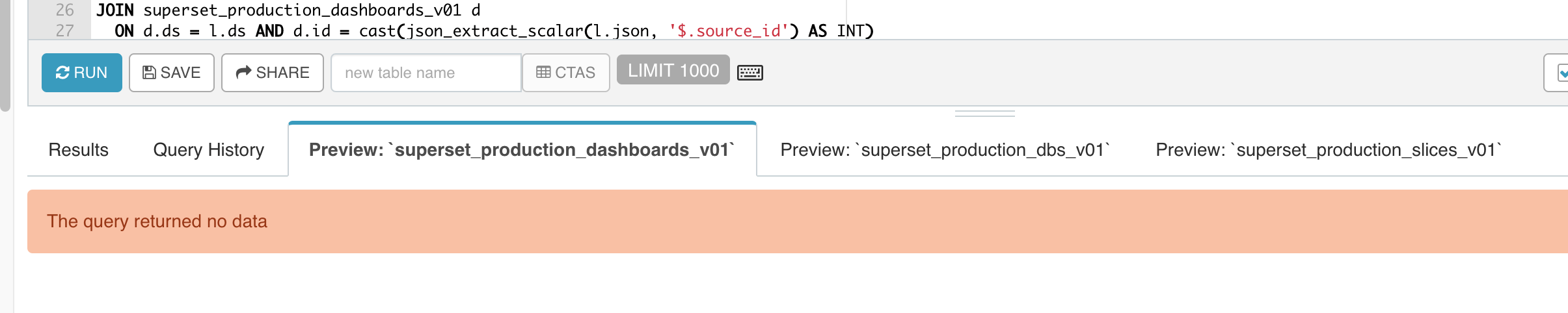 Maybe separate to this, can we add a close icon for table preview tabs as well? ---------------------------------------------------------------- This is an automated message from the Apache Git Service. To respond to the message, please log on to GitHub and use the URL above to go to the specific comment. For queries about this service, please contact Infrastructure at: [email protected] --------------------------------------------------------------------- To unsubscribe, e-mail: [email protected] For additional commands, e-mail: [email protected]