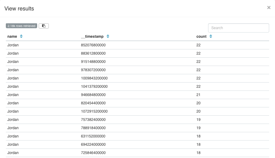 ### SUMMARY When pressing "View results" on Explore View, the primary temporal column is displayed as epochs. This applies a typical `%Y-%m-%d %H:%M:%S` format to the `__timestamp` column to make the results slightly more legible. ### BEFORE  ### AFTER  ### TEST PLAN CI + new tests ### ADDITIONAL INFORMATION <!--- Check any relevant boxes with "x" --> <!--- HINT: Include "Fixes #nnn" if you are fixing an existing issue --> - [ ] Has associated issue: - [ ] Changes UI - [ ] Requires DB Migration. - [ ] Confirm DB Migration upgrade and downgrade tested. - [ ] Introduces new feature or API - [ ] Removes existing feature or API ---------------------------------------------------------------- This is an automated message from the Apache Git Service. To respond to the message, please log on to GitHub and use the URL above to go to the specific comment. For queries about this service, please contact Infrastructure at: [email protected] --------------------------------------------------------------------- To unsubscribe, e-mail: [email protected] For additional commands, e-mail: [email protected]