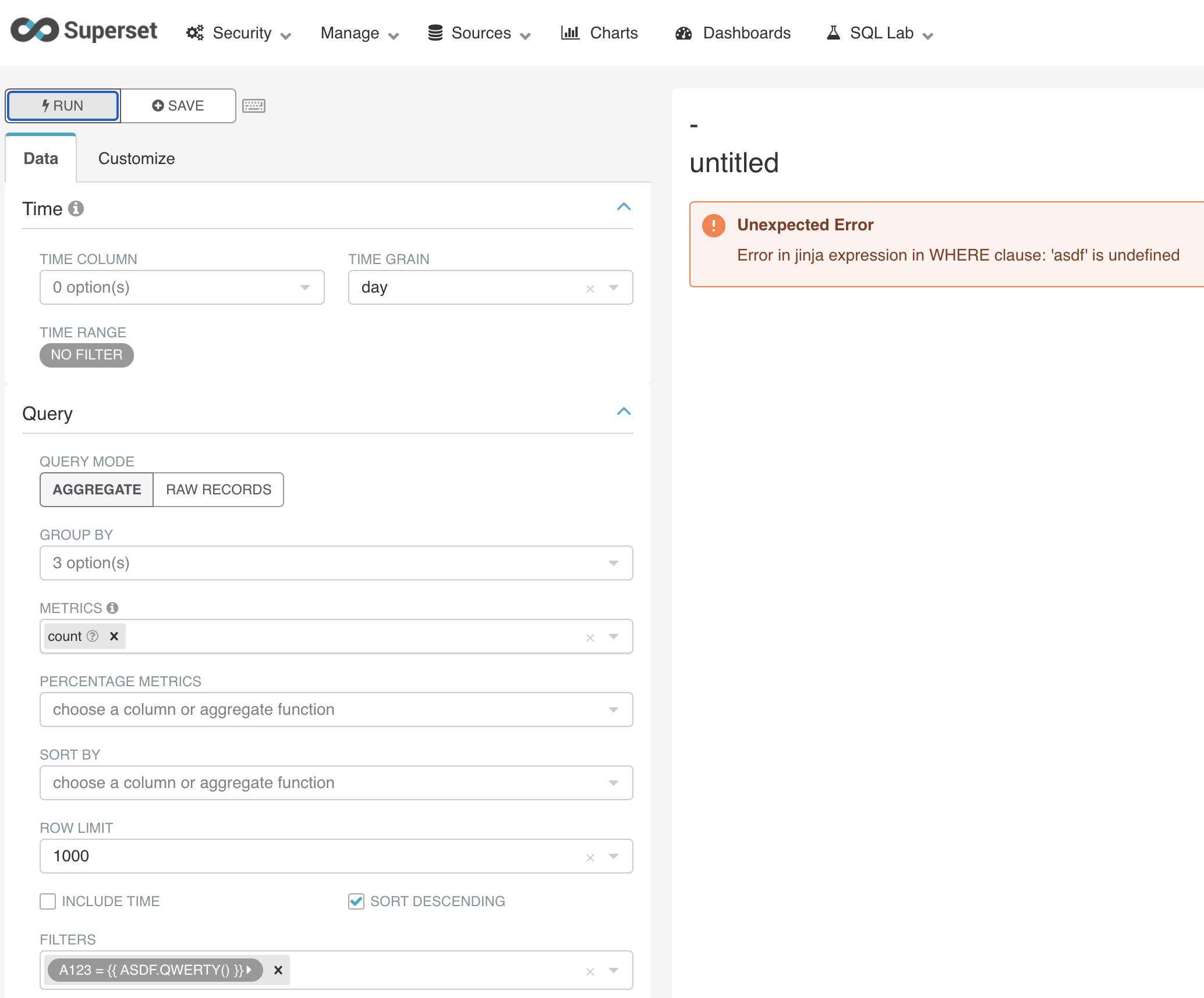 ### SUMMARY Currently expected exceptions in visualization queries are not correctly caught, leading to a large number of unnecessary false positives on monitoring systems. This catches typical exceptions (e.g. `TemplateError`) and reraises them as `QueryObjectValidationError` (extends `SupersetException`) with more context, which are later caught and sent to the frontend without exception logging in the backend. ### BEFORE/AFTER SCREENSHOTS OR ANIMATED GIF  ### TEST PLAN <!--- What steps should be taken to verify the changes --> Local testing with both legacy and new charts + ensure that no exceptions are logged ### ADDITIONAL INFORMATION <!--- Check any relevant boxes with "x" --> <!--- HINT: Include "Fixes #nnn" if you are fixing an existing issue --> - [ ] Has associated issue: - [ ] Changes UI - [ ] Requires DB Migration. - [ ] Confirm DB Migration upgrade and downgrade tested. - [ ] Introduces new feature or API - [ ] Removes existing feature or API ---------------------------------------------------------------- This is an automated message from the Apache Git Service. To respond to the message, please log on to GitHub and use the URL above to go to the specific comment. For queries about this service, please contact Infrastructure at: [email protected] --------------------------------------------------------------------- To unsubscribe, e-mail: [email protected] For additional commands, e-mail: [email protected]