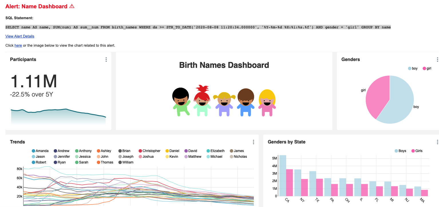 ### SUMMARY <!--- Describe the change below, including rationale and design decisions --> Used scheduled report implementation of dashboard screenshots to add support for dashboards on SQL-based alerting. Also updated email alerts to support emails with no screenshot. Form:  Slack: <img width="564" alt="Screen Shot 2020-08-11 at 11 26 19 AM" src="https://user-images.githubusercontent.com/32852580/89934990-483a2880-dbc6-11ea-8990-4f37de1b5692.png"> Email:  ### TEST PLAN <!--- What steps should be taken to verify the changes --> - [x] local test - [ ] dropbox staging - [ ] dropbox prob ### ADDITIONAL INFORMATION <!--- Check any relevant boxes with "x" --> <!--- HINT: Include "Fixes #nnn" if you are fixing an existing issue --> - [ ] Has associated issue: - [ ] Changes UI - [ ] Requires DB Migration. - [ ] Confirm DB Migration upgrade and downgrade tested. - [ ] Introduces new feature or API - [ ] Removes existing feature or API ---------------------------------------------------------------- This is an automated message from the Apache Git Service. To respond to the message, please log on to GitHub and use the URL above to go to the specific comment. For queries about this service, please contact Infrastructure at: [email protected] --------------------------------------------------------------------- To unsubscribe, e-mail: [email protected] For additional commands, e-mail: [email protected]