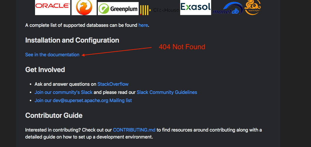 The documentation link in README returns 404.  ---------------------------------------------------------------- This is an automated message from the Apache Git Service. To respond to the message, please log on to GitHub and use the URL above to go to the specific comment. For queries about this service, please contact Infrastructure at: [email protected] --------------------------------------------------------------------- To unsubscribe, e-mail: [email protected] For additional commands, e-mail: [email protected]