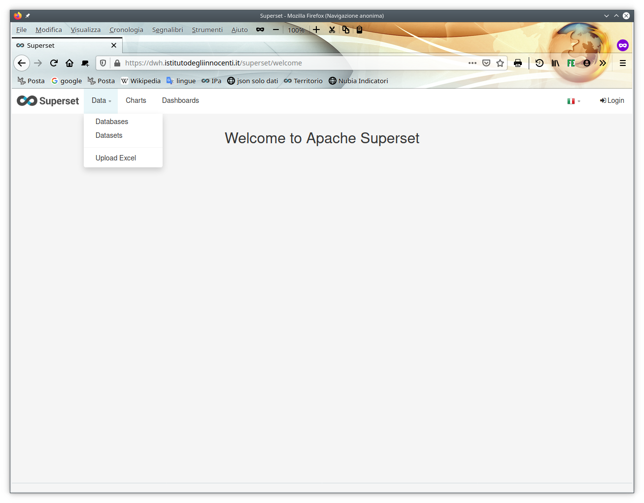 Thanks! using "superset init" caused the resurrection of Data menu! Now, I've a further problem after login: it stucks on loading image....   ---------------------------------------------------------------- This is an automated message from the Apache Git Service. To respond to the message, please log on to GitHub and use the URL above to go to the specific comment. For queries about this service, please contact Infrastructure at: [email protected] --------------------------------------------------------------------- To unsubscribe, e-mail: [email protected] For additional commands, e-mail: [email protected]