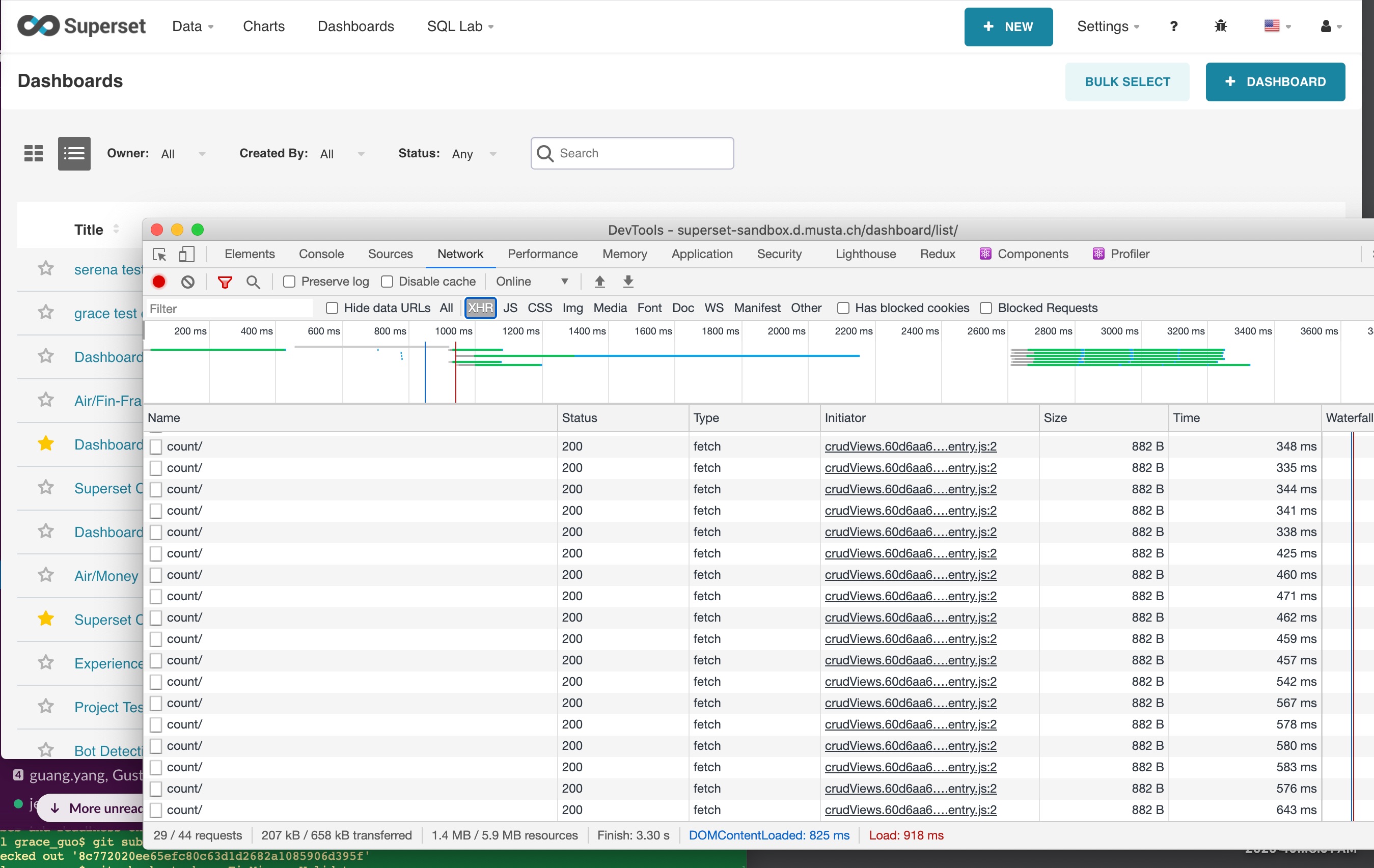 When I open dashboard or chart list page with ENABLE_REACT_CRUD_VIEWS flag: ### Actual results  - it sends 25 api calls to backend. If i have 50 items per page, then it will send 50 api calls. - each api call is to check if dashboard/chart is favorite ### Expected results Can this `favorite` information get loaded with initial other bootstrap data? We should keep this api in this page, so that user can fav/unfav dashboard without open it. But sending a call for each of item, this design is not optimized. ### Environment latest master ### Checklist Make sure these boxes are checked before submitting your issue - thank you! - [x] I have checked the superset logs for python stacktraces and included it here as text if there are any. - [x] I have reproduced the issue with at least the latest released version of superset. - [x] I have checked the issue tracker for the same issue and I haven't found one similar. ### Additional context Add any other context about the problem here. ---------------------------------------------------------------- This is an automated message from the Apache Git Service. To respond to the message, please log on to GitHub and use the URL above to go to the specific comment. For queries about this service, please contact Infrastructure at: [email protected] --------------------------------------------------------------------- To unsubscribe, e-mail: [email protected] For additional commands, e-mail: [email protected]