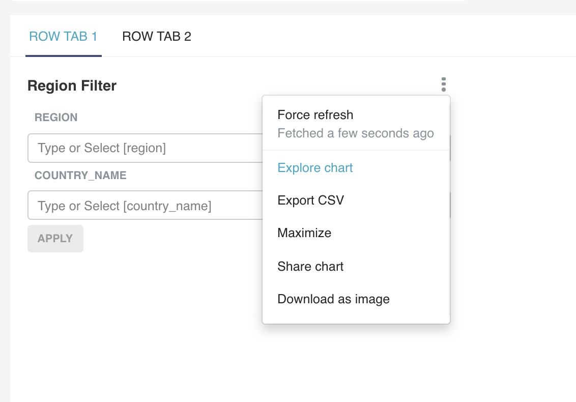 ### SUMMARY Replaces MenuItems in SliceHeaderControls, DisplayQueryButton and SliceAdder components. ### BEFORE/AFTER SCREENSHOTS OR ANIMATED GIF Before:  After:  ### TEST PLAN <!--- What steps should be taken to verify the changes --> ### ADDITIONAL INFORMATION <!--- Check any relevant boxes with "x" --> <!--- HINT: Include "Fixes #nnn" if you are fixing an existing issue --> - [ ] Has associated issue: - [x] Changes UI - [ ] Requires DB Migration. - [ ] Confirm DB Migration upgrade and downgrade tested. - [ ] Introduces new feature or API - [ ] Removes existing feature or API ---------------------------------------------------------------- This is an automated message from the Apache Git Service. To respond to the message, please log on to GitHub and use the URL above to go to the specific comment. For queries about this service, please contact Infrastructure at: [email protected] --------------------------------------------------------------------- To unsubscribe, e-mail: [email protected] For additional commands, e-mail: [email protected]