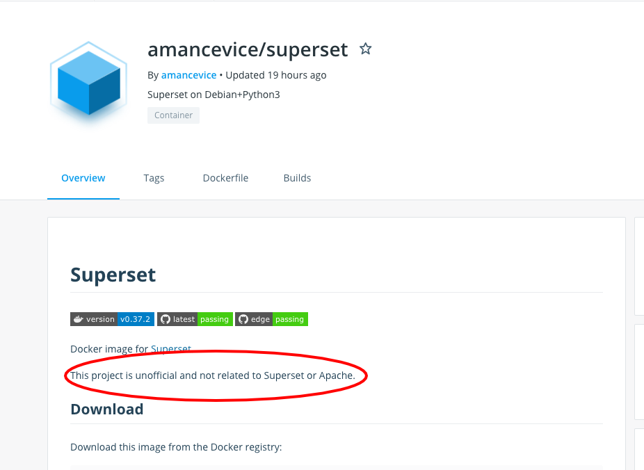hi @korridor i can't tell with certainty what might be causing this but as a first step i'd suggest you use the official docker image  Instructions to install using docker-compose --> https://superset.apache.org/docs/installation/installing-superset-using-docker-compose Please let us know if the issue still exists after trying it with this distribution. ---------------------------------------------------------------- This is an automated message from the Apache Git Service. To respond to the message, please log on to GitHub and use the URL above to go to the specific comment. For queries about this service, please contact Infrastructure at: [email protected] --------------------------------------------------------------------- To unsubscribe, e-mail: [email protected] For additional commands, e-mail: [email protected]