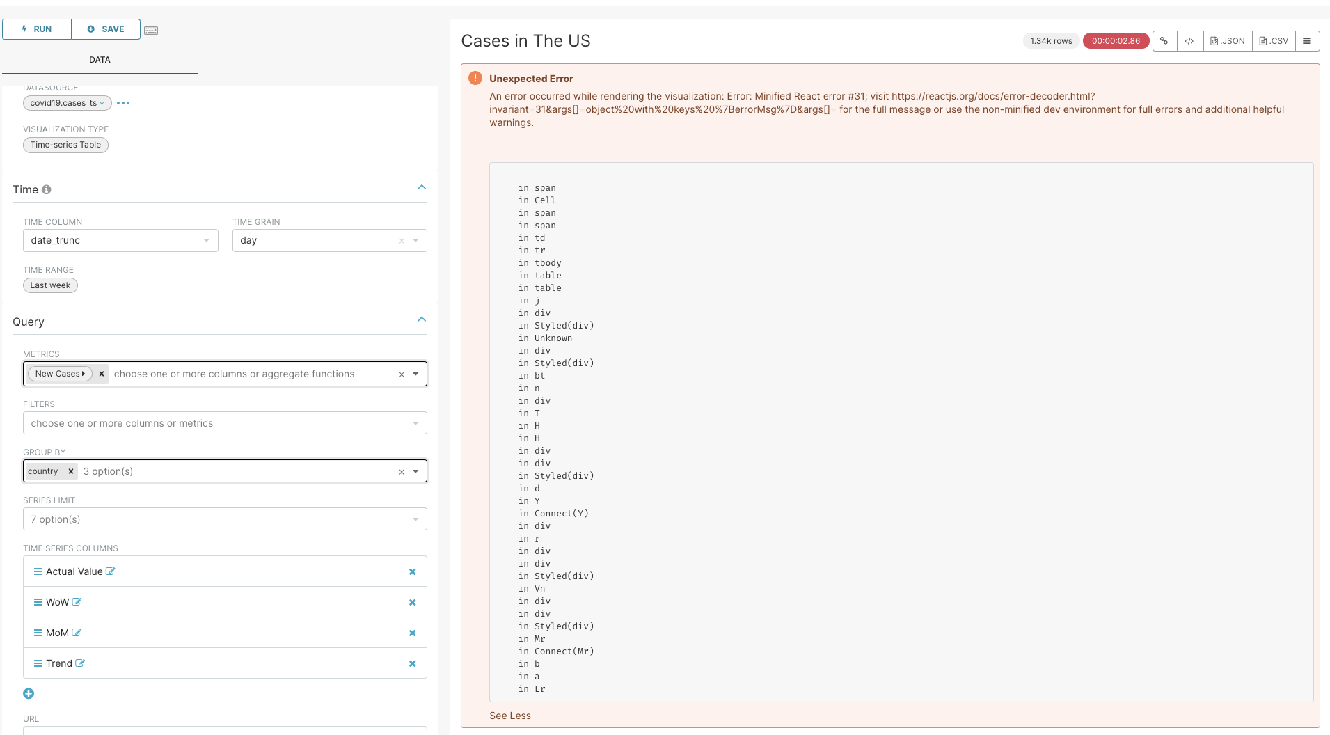 ## Screenshot  ## Description When there are not enough data points, superset prints a weird react message. It would be less scary and preferable a message to said change the time range. ## Design input [describe any input/collaboration you'd like from designers, and tag accordingly. For design review, add the label `design:review`. If this includes a design proposal, include the label `design:suggest`] ---------------------------------------------------------------- This is an automated message from the Apache Git Service. To respond to the message, please log on to GitHub and use the URL above to go to the specific comment. For queries about this service, please contact Infrastructure at: [email protected] --------------------------------------------------------------------- To unsubscribe, e-mail: [email protected] For additional commands, e-mail: [email protected]
