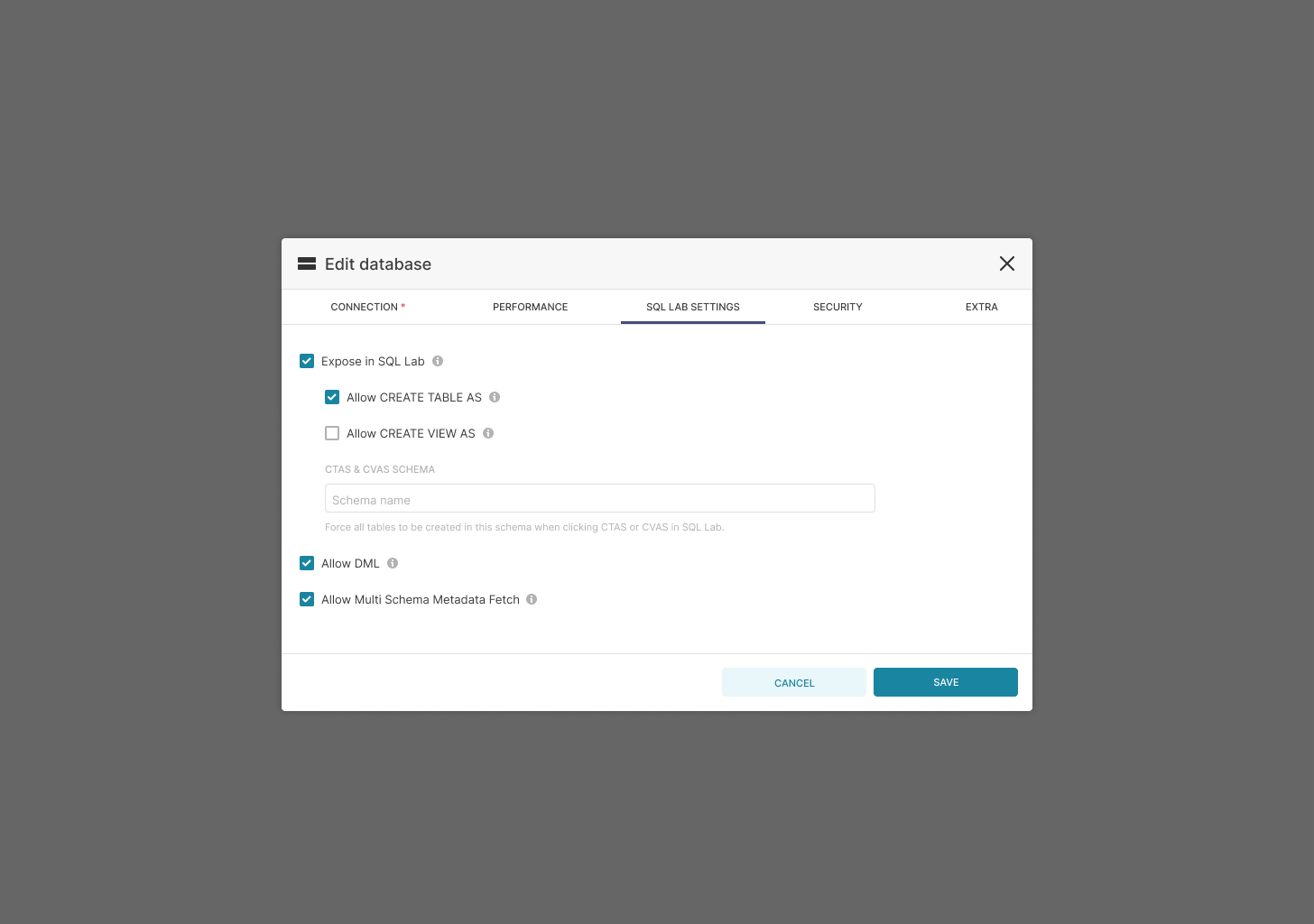 Here's a link to the prototype that addresses this pain point. The goal is to display only what the user needs to see at any given time in their flow to reduce visual clutter and information overload. Changes: • Both Allow CTAS and CVAS are dependent on the 'Expose in SQL Lab' selection so they appear only when applicable • The schema input field moved closer to its related context (CVAS and CTAS) • The schema input field copy is updated to address CTAS **and** CVAS https://www.figma.com/proto/NbuTOMaUdv2GCBoDyihdLw/Database-CRUD-P0?node-id=475%3A1&scaling=min-zoom%5C  ---------------------------------------------------------------- This is an automated message from the Apache Git Service. To respond to the message, please log on to GitHub and use the URL above to go to the specific comment. For queries about this service, please contact Infrastructure at: [email protected] --------------------------------------------------------------------- To unsubscribe, e-mail: [email protected] For additional commands, e-mail: [email protected]