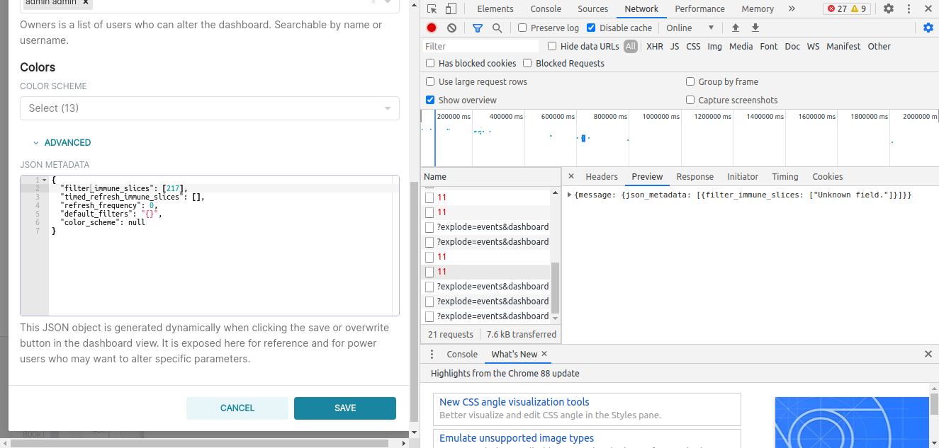 `{message: {json_metadata: [{filter_immune_slices: ["Unknown field."]}]}}`