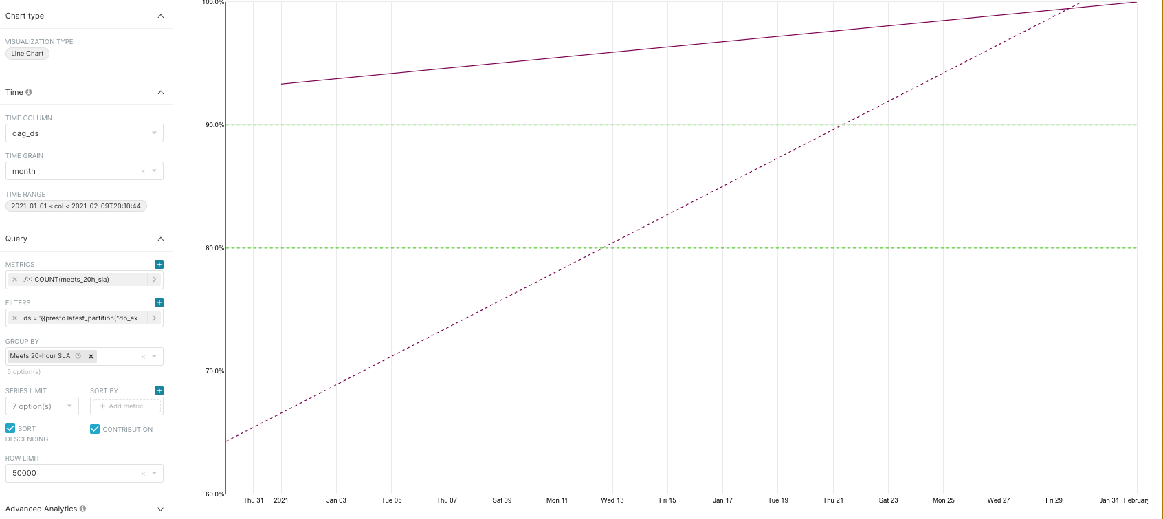 **Is your feature request related to a problem? Please describe.** Currently when user selects monthly or weekly time grain in Explore, the X axis on the chart still displays all the days (if there is space for it - depending on time period overall selected). There is no way to change this currently in the Customize tab. **Describe the solution you'd like** If monthly time grain is selected, the X axis on the chart should just display months (January, February etc.) based on what formatting user selects in the Customize tab. If weekly time grain is selected, the X axis on the chart should just display weeks. (e.g. date of the first day (Monday) in each week) **Describe alternatives you've considered** other option is to let user configure this in the "customize tab" **Additional context** See two examples of the problem. My time grain is weekly, but I see all the days bellow, even though chart values are populated weekly.  My time grain is monthly but I see again all the days on X axis.  ---------------------------------------------------------------- This is an automated message from the Apache Git Service. To respond to the message, please log on to GitHub and use the URL above to go to the specific comment. For queries about this service, please contact Infrastructure at: [email protected] --------------------------------------------------------------------- To unsubscribe, e-mail: [email protected] For additional commands, e-mail: [email protected]