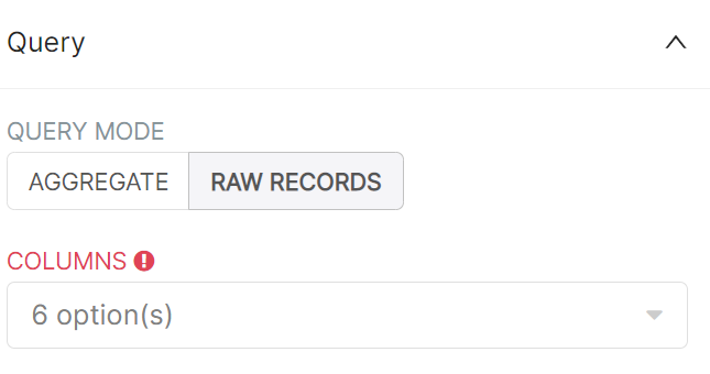 In the Chart explorer the table visualization lets you choose aggregate or raw mode. In raw mode the COLUMNS control should report an error when no columns are chosen. For example something like this.  #### How to reproduce the bug 1. Go to Chart explorer UI 2. Choose Table visualization 3. Choose QUERY MODE = RAW RECORDS 4. RUN query However the table visualization does not check that the COLUMNS control is empty and lets you execute the query with no selection. This results in an "Unexpected Error, Error: Empty query?" It would be better if the COLUMNS control checked for the empty state and reported the issue like depicted above. ---------------------------------------------------------------- This is an automated message from the Apache Git Service. To respond to the message, please log on to GitHub and use the URL above to go to the specific comment. For queries about this service, please contact Infrastructure at: [email protected] --------------------------------------------------------------------- To unsubscribe, e-mail: [email protected] For additional commands, e-mail: [email protected]