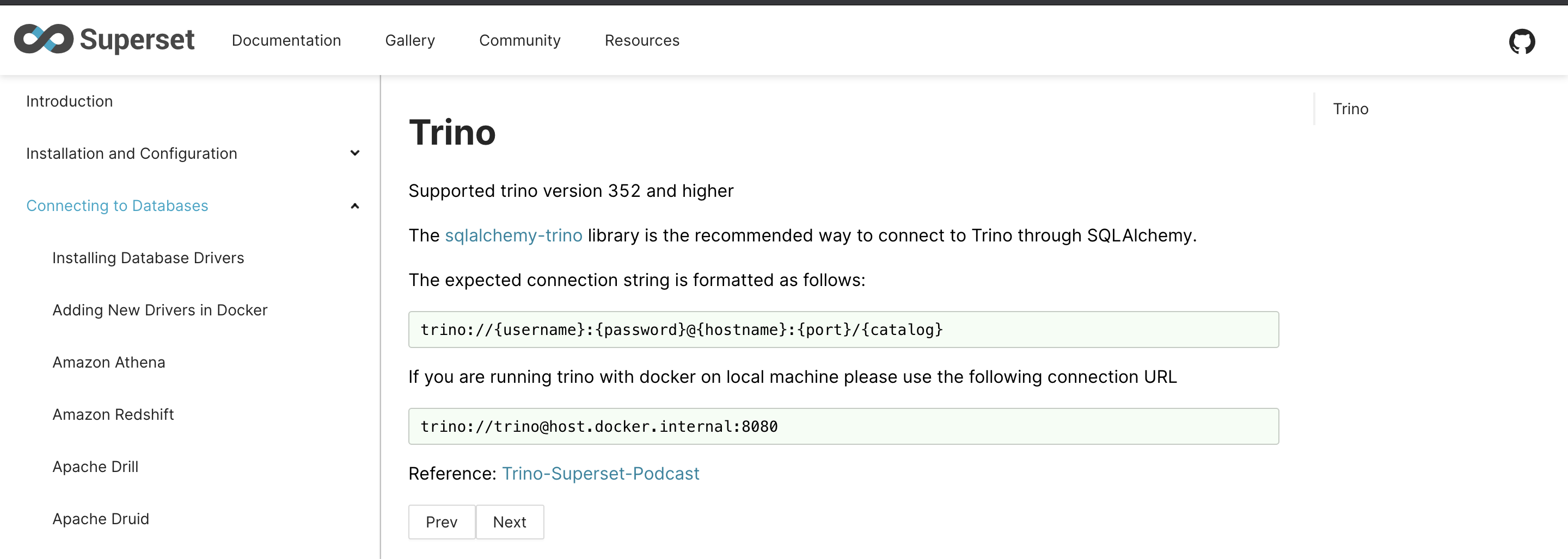 ### SUMMARY - The recent changes in `sqlalchemy-trino` will make it incompatible to work with the trino version with 351 or lower. So it is important to notify users that Trino connector for Superset about the supported version of trino. - It would be helpful to include the connection string for the local docker environment as people might need to spend a lot of time debugging this. - Additionally, I have added the trino superset podcast link for reference as users might find it useful. ### BEFORE/AFTER SCREENSHOTS OR ANIMATED GIF <!--- Skip this if not applicable --> BEFORE  AFTER  ### TEST PLAN <!--- What steps should be taken to verify the changes --> ### ADDITIONAL INFORMATION <!--- Check any relevant boxes with "x" --> <!--- HINT: Include "Fixes #nnn" if you are fixing an existing issue --> - [ ] Has associated issue: - [ ] Changes UI - [ ] Includes DB Migration (follow approval process in [SIP-59](https://github.com/apache/superset/issues/13351)) - [ ] Migration is atomic, supports rollback & is backwards-compatible - [ ] Confirm DB migration upgrade and downgrade tested - [ ] Runtime estimates and downtime expectations provided - [ ] Introduces new feature or API - [ ] Removes existing feature or API -- This is an automated message from the Apache Git Service. To respond to the message, please log on to GitHub and use the URL above to go to the specific comment. For queries about this service, please contact Infrastructure at: [email protected] --------------------------------------------------------------------- To unsubscribe, e-mail: [email protected] For additional commands, e-mail: [email protected]