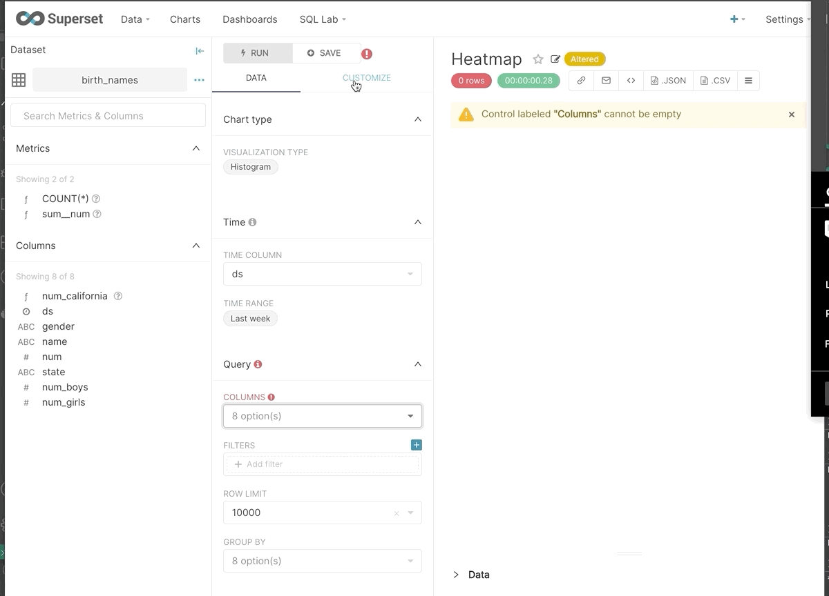 ### SUMMARY <!--- Describe the change below, including rationale and design decisions --> Flex layout in the explore section _usually_ looks OK, but when things are in an error state, and all three columns are shorter than the viewport, that means the whole _layout_ can get too short, making a weird gap under the menu. This sets a `flex-basis` property that's *plenty* tall (the entire viewport) to take up the space, and then flexbox will shrink things as needed. Issue reported by @srinify ### BEFORE/AFTER SCREENSHOTS OR ANIMATED GIF <!--- Skip this if not applicable --> Before:  After:  ### TEST PLAN <!--- What steps should be taken to verify the changes --> Select a dataset without too many fields (so the list is short) Find a viz with a sufficiently short control panel (either tab in the control panel, as seen in the gifs above) Put the chart in an error state so it loses its height. Witness the layout shift at the top (or... hopefully not). ### ADDITIONAL INFORMATION <!--- Check any relevant boxes with "x" --> <!--- HINT: Include "Fixes #nnn" if you are fixing an existing issue --> - [ ] Has associated issue: - [x] Changes UI - [ ] Includes DB Migration (follow approval process in [SIP-59](https://github.com/apache/superset/issues/13351)) - [ ] Migration is atomic, supports rollback & is backwards-compatible - [ ] Confirm DB migration upgrade and downgrade tested - [ ] Runtime estimates and downtime expectations provided - [ ] Introduces new feature or API - [ ] Removes existing feature or API -- This is an automated message from the Apache Git Service. To respond to the message, please log on to GitHub and use the URL above to go to the specific comment. For queries about this service, please contact Infrastructure at: [email protected] --------------------------------------------------------------------- To unsubscribe, e-mail: [email protected] For additional commands, e-mail: [email protected]