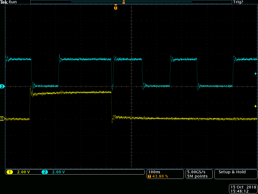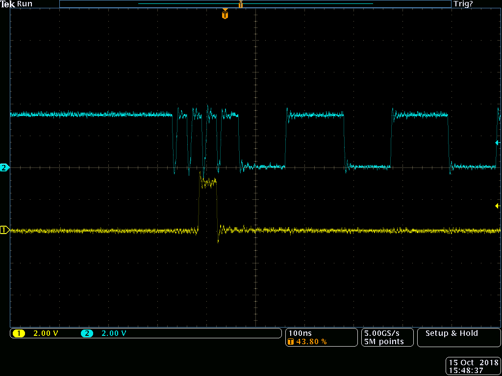 -- gerrit commit 9ab8558e5e41b46f5b125e5739566fd587fb35ab Author: bunnie <[email protected]> Date: Tue Oct 16 10:08:51 2018 -0400 work around bcm2835 gpio hardware synchronization bug An issue was found on the Raspberry Pi 3B+ (which may apply to other models) where the BCM2835 GPIO implementation can cause glitches. It looks a bit like this: https://bunniefoo.com/bunnie/openocd-lone-glitch.png https://bunniefoo.com/bunnie/openocd-serial-glitch.png It seems that the GPIO unit on the BCM2835 runs at a much slower clock rate (maybe 125MHz based on the glitch width?) and somehow data committed to/from the CPU is not synched correctly. This would manifest in set/clr events not executing immediately, and also stale data being stuck on the read path. This synch failure could either be due to a cache coherence bug, or it could be a clock domain synchronizer that's not quite working right. My guess is it's the latter -- the synchronizer may be holding off on passing the very last write or read until some arbitrary point later, could be that it misses a bus slot or whatever, but this leads to strictly the correct order of data, but the time at which the data arrives can be highly variable. The glitches would happen maybe once every million cycles or so. The Xilinx XC7 FPGA is fast enough to actually respond to the glitch and continue working if the data levels are constant through the glitched clock, so in many cases the glitch would not lead to an improper configuration. However, we'd see a fault maybe once every few configurations, and SPI programming absolutely would not work with the BCM2835 module (works fine with sysfs). The fix is to insert a dummy read to the BCM2835 GPIO block before doing any read or write transaction. The read seems to flush the synchronizer or cache so that things are in a good state for the next operation. The downside is that the read is slow, this limits the overall bitbang rate, but at least it works as intended. I'm able to clock about a 5MHz rate now, error-free. Change-Id: I5548863f96f9b4702d559fd087bcea7e487b2771 Signed-off-by: bunnie <[email protected]> diff --git a/src/jtag/drivers/bcm2835gpio.c b/src/jtag/drivers/bcm2835gpio.c index 38ef163..f8f1885 100644 --- a/src/jtag/drivers/bcm2835gpio.c +++ b/src/jtag/drivers/bcm2835gpio.c @@ -91,8 +91,13 @@ static int speed_coeff = 113714; static int speed_offset = 28; static unsigned int jtag_delay; +/* dummy value for synchronizing bcm2835 GPIO transactions */ +static uint32_t lev; + static bb_value_t bcm2835gpio_read(void) { + lev = GPIO_LEV; /* dummy read to synchronize bcm2835 gpio block */ + return (GPIO_LEV & 1<<tdo_gpio) ? BB_HIGH : BB_LOW; } @@ -101,6 +106,7 @@ static int bcm2835gpio_write(int tck, int tms, int tdi) uint32_t set = tck<<tck_gpio | tms<<tms_gpio | tdi<<tdi_gpio; uint32_t clear = !tck<<tck_gpio | !tms<<tms_gpio | !tdi<<tdi_gpio; + lev = GPIO_LEV; /* dummy read to synch bcm2835 gpio block */ GPIO_SET = set; GPIO_CLR = clear; @@ -115,6 +121,7 @@ static int bcm2835gpio_swd_write(int tck, int tms, int tdi) uint32_t set = tck<<swclk_gpio | tdi<<swdio_gpio; uint32_t clear = !tck<<swclk_gpio | !tdi<<swdio_gpio; + lev = GPIO_LEV; GPIO_SET = set; GPIO_CLR = clear; @@ -140,6 +147,7 @@ static int bcm2835gpio_reset(int trst, int srst) clear |= srst<<srst_gpio; } + lev = GPIO_LEV; GPIO_SET = set; GPIO_CLR = clear; @@ -485,6 +493,7 @@ static int bcm2835gpio_init(void) */ INP_GPIO(tdo_gpio); + lev = GPIO_LEV; GPIO_CLR = 1<<tdi_gpio | 1<<tck_gpio | 1<<swdio_gpio | 1<<swclk_gpio; GPIO_SET = 1<<tms_gpio; @@ -495,11 +504,13 @@ static int bcm2835gpio_init(void) OUT_GPIO(swdio_gpio); if (trst_gpio != -1) { trst_gpio_mode = MODE_GPIO(trst_gpio); + lev = GPIO_LEV; GPIO_SET = 1 << trst_gpio; OUT_GPIO(trst_gpio); } if (srst_gpio != -1) { srst_gpio_mode = MODE_GPIO(srst_gpio); + lev = GPIO_LEV; GPIO_SET = 1 << srst_gpio; OUT_GPIO(srst_gpio); } -- _______________________________________________ OpenOCD-devel mailing list [email protected] https://lists.sourceforge.net/lists/listinfo/openocd-devel