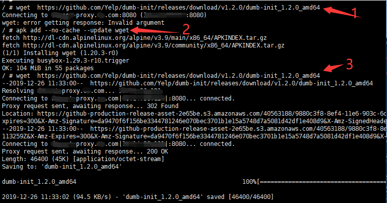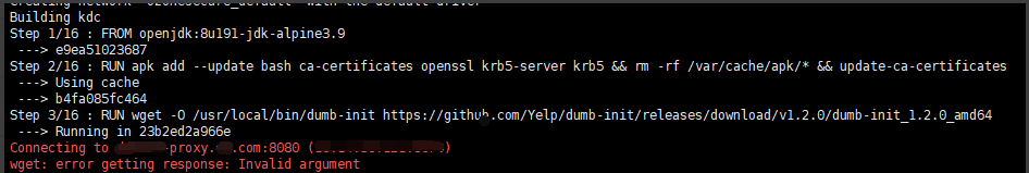 runzhiwang opened a new pull request #395: HDDS-2812. Fix low version wget cannot resolve the proxy of https URL: https://github.com/apache/hadoop-ozone/pull/395 ## What changes were proposed in this pull request? How to reproduce the problem: When run compose/ozonesecure/test.sh and compose/ozonesecure-mr/test.sh in my machine which connect network by proxy, it fails to `wget https://github.com` as the image show. Because the version of wget in openjdk:8u191-jdk-alpine3.9 is too low, it cannot resolve the proxy of https.  How to fix: By `apk add --no-cache --update wget` before `wget`. ## What is the link to the Apache JIRA https://issues.apache.org/jira/browse/HDDS-2812 ## How was this patch tested? Execute compose/ozonesecure/test.sh and compose/ozonesecure-mr/test.sh on computer which connect outer network . Or test it in a simple way as the image show: 1. Before update wget, execute wget https://github.com, it failed. 2. Update wget 3. wget https again, it succeed.