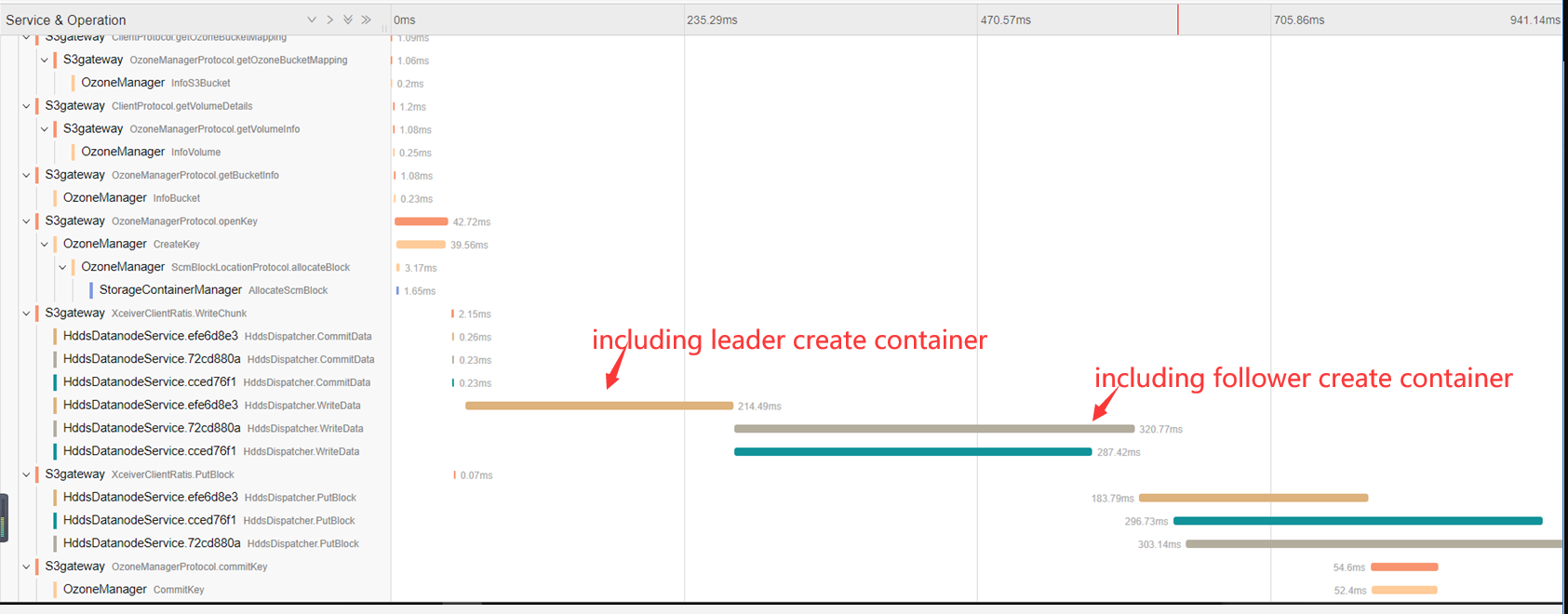runzhiwang opened a new pull request #734: HDDS-3240. Improve write efficiency by creating container in parallel URL: https://github.com/apache/hadoop-ozone/pull/734 ## What changes were proposed in this pull request? What's the problem ? Now follower cannot create container until leader finish creating container. But follower and leader can create container in parallel rather than in sequential. Why leader and follower create container in sequential now ? 1. From the code, the [future thread](https://github.com/apache/hadoop-ozone/blob/master/hadoop-hdds/container-service/src/main/java/org/apache/hadoop/ozone/container/common/transport/server/ratis/ContainerStateMachine.java#L672) do `getCachedStateMachineData ` in `readStateMachineData `and the [future thread](https://github.com/apache/hadoop-ozone/blob/master/hadoop-hdds/container-service/src/main/java/org/apache/hadoop/ozone/container/common/transport/server/ratis/ContainerStateMachine.java#L459) do `createContainer` in `writeStateMachineData `are the same [thread](https://github.com/apache/hadoop-ozone/blob/master/hadoop-hdds/container-service/src/main/java/org/apache/hadoop/ozone/container/common/transport/server/ratis/ContainerStateMachine.java#L505). Because `writeStateMachineData `called before `readStateMachineData`. So leader must wait `createContainer `finish then `getCachedStateMachineData `and append logs to the follower, sofollower must wait leader finish `createContainer`. 2. From the jaeger UI, you can also see follower create container after leader finishing it currently.  How to improve it ? This order can be improved by distinguishing the thread used by `getCachedStateMachineData ` and `createContainer `, and [data = readStateMachineData(requestProto, term, logIndex)](https://github.com/apache/hadoop-ozone/blob/master/hadoop-hdds/container-service/src/main/java/org/apache/hadoop/ozone/container/common/transport/server/ratis/ContainerStateMachine.java#L619) use same thread with `createContainer `. If [stateMachineDataCache.get(logIndex)](https://github.com/apache/hadoop-ozone/blob/master/hadoop-hdds/container-service/src/main/java/org/apache/hadoop/ozone/container/common/transport/server/ratis/ContainerStateMachine.java#L617) does not return null, leader can get stateMachineData from cache and need not wait `createContainer` finish, thus leader and follower can be independent. But if it return null, leader must finish `createContainer `and then apennd logs to the follower, so I think [data = readStateMachineData(requestProto, term, logIndex)](https://github.com/apache/hadoop-ozone/blob/master/hadoop-hdds/container-service/src/main/java/org/apache/hadoop/ozone/container/common/transport/server/ratis/ContainerStateMachine.java#L619) should use the same thread with `createContainer` rather than the whole [getCachedStateMachineData](https://github.com/apache/hadoop-ozone/blob/master/hadoop-hdds/container-service/src/main/java/org/apache/hadoop/ozone/container/common/transport/server/ratis/ContainerStateMachine.java#L614) ## What is the link to the Apache JIRA https://issues.apache.org/jira/browse/HDDS-3240 ## How was this patch tested? Existed UT and IT