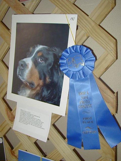 Anyway, something else which cheered me up further was finding out that I'd won a prize (well, a first place ribbon, anyway) in the Bernese Mountain Dog Club of America's Photo Contest at their recent specialty show in Texas http://www.bernernews.net/2004/pictures/0415.jpg The actual picture I submitted can be seen here http://www.beard-redfern.com/tmp/prize_w.jpg The category in which we won makes it even more special as Boris was diagnosed with lymphosarcoma in September last year. wendy beard ottawa, canada http://www.beard-redfern.com wendy beard ottawa, canada http://www.beard-redfern.com