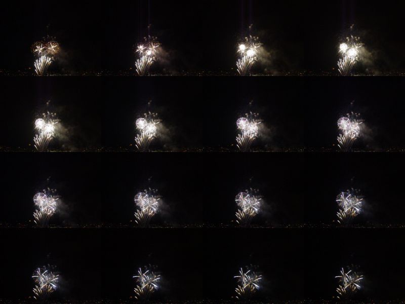 I shot some the other day: http://phred.org/~alex/pictures/july4-04/ I'm actually kinda bored shooting fireworks now and don't think that I'll bother again next year. This is my favorite of the ones from this year: http://phred.org/~alex/pictures/july4-04/reduced/IMGP3833.jpg It isn't the most exciting set of fireworks, but I like that you can see the city lights around the lake. This is the best fireworks photo that I've taken with digital, even thought it was shot through window glass (and you can see some reflections from the multi-pane glass): http://phred.org/~alex/pictures/newyears2001/reduced/fireworks.jpg And a bunch from last year: http://phred.org/~alex/pictures/july4-03/ Some of the contact sheet ones (generated by a special mode in my old DSC-F717) are kinda fun: http://phred.org/~alex/pictures/july4-03/reduced/july4-03%20063.jpg http://phred.org/~alex/pictures/july4-03/reduced/july4-03%20061.jpg I agree that digital is the way to go for shooting fireworks. alex