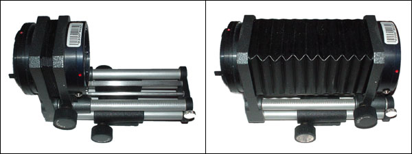When I connect a 200mm lens, I have to back out quite long to get sharp images. More than half a meter. With the bellows on the short end and the lens focused the closest possible, the distance from front lens to subject is 600mm. The magnification don't get anywhere near 1:1, though. Rather approx. 1:2.3.